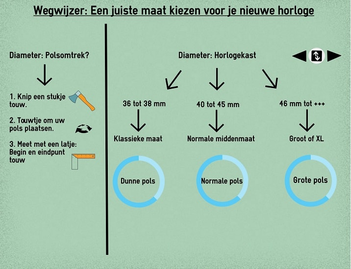 Je wilt natuurlijk een horloge om je pols dat niet alleen past bij de omtrek van je pols, maar ook qua grootte goed in verhouding is.