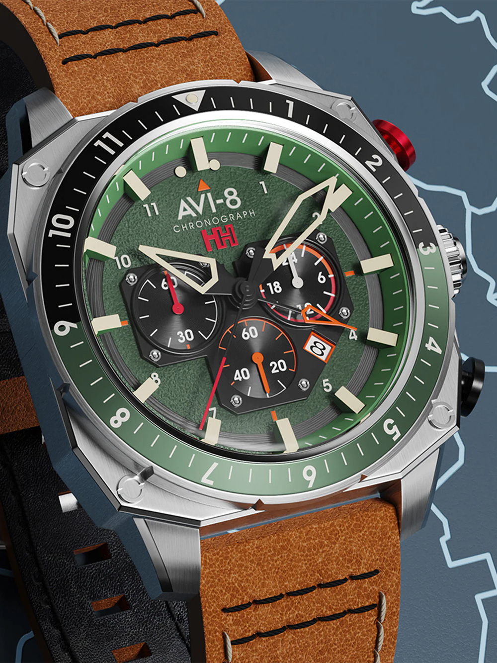 AVI-8 AV-4100-01 Herenhorloge Hawker Hunter dubbele tijd chronograaf 43 mm 5ATM