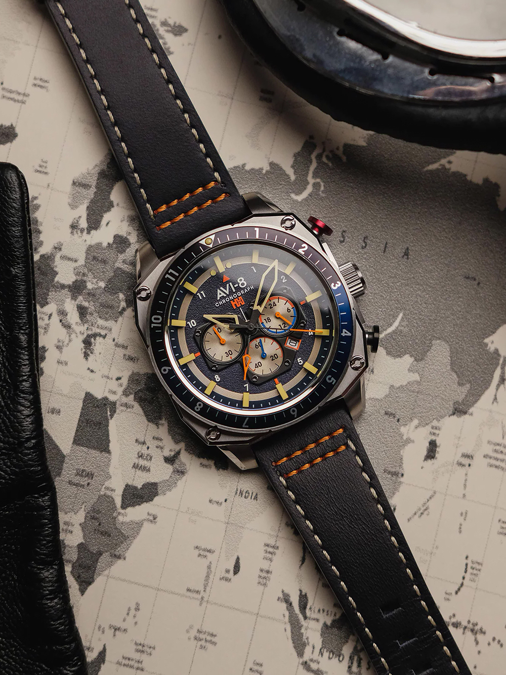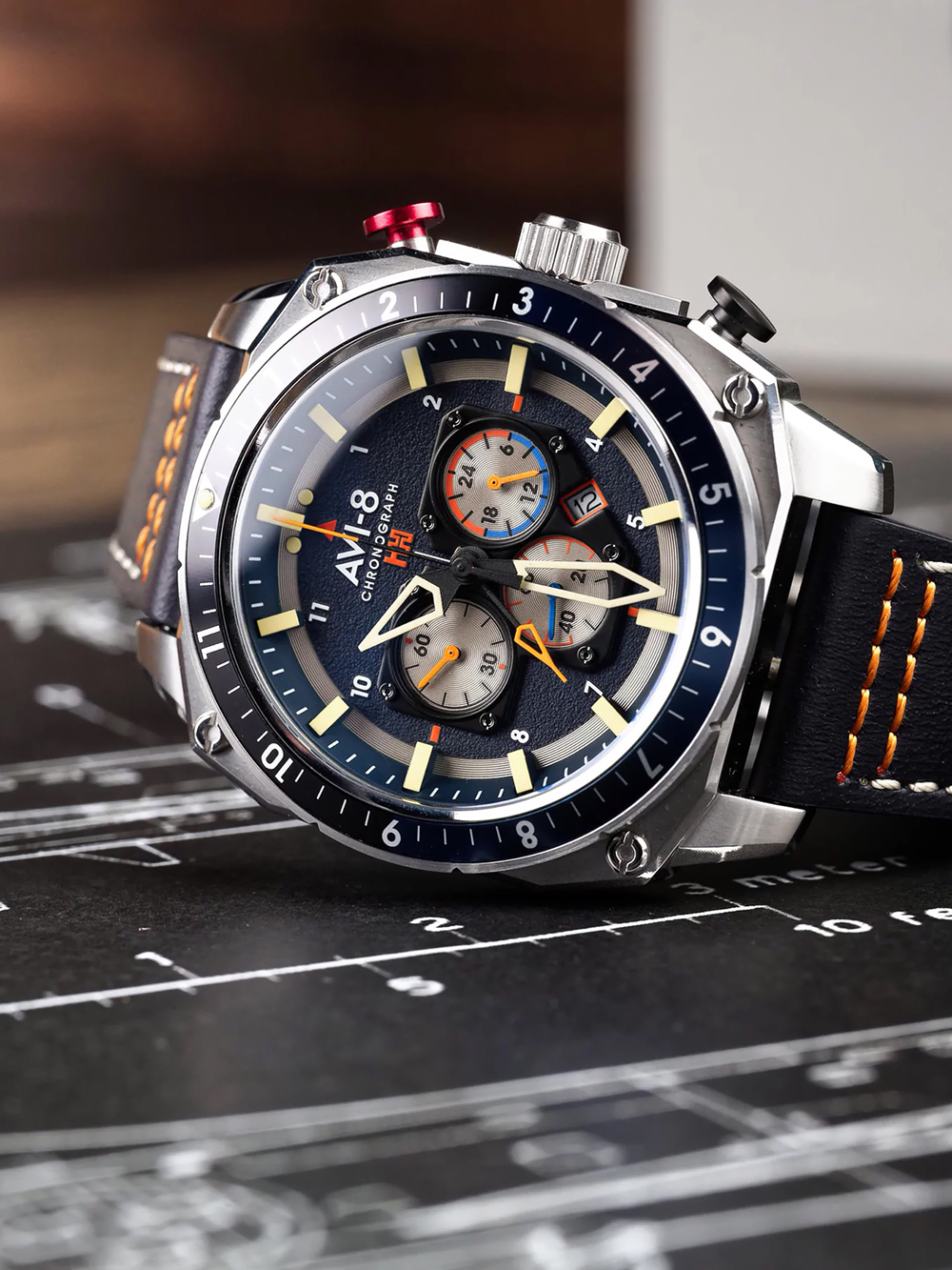 AVI-8 AV-4100-02 herenhorloge Hawker Hunter dubbele tijd chronograaf 43 mm 5ATM