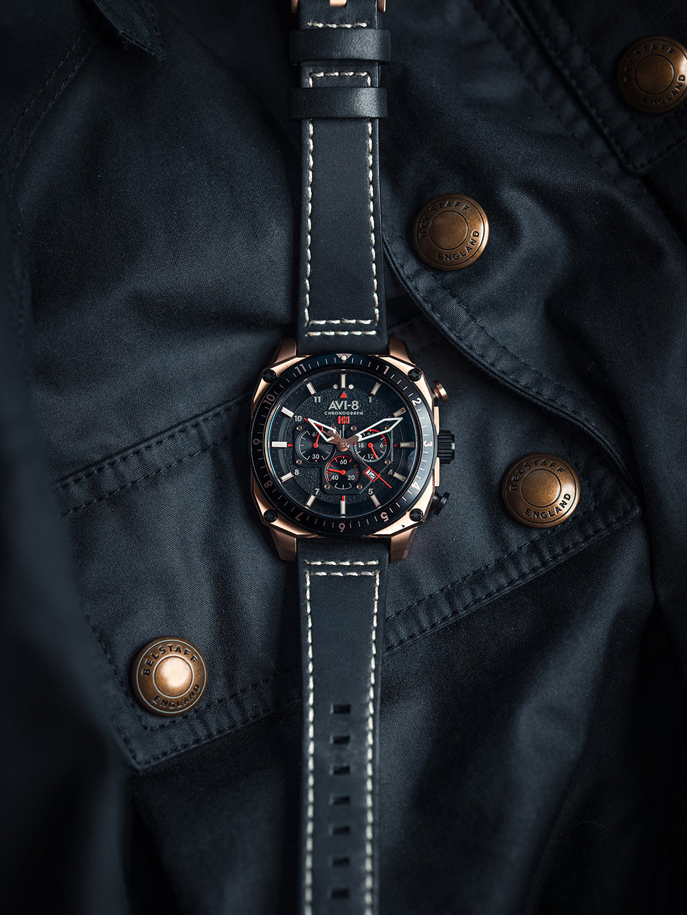 Met het AVI-8 AV-4100-06 Hawker Hunter herenhorloge ben je altijd bij de tijd dankzij de dubbele tijd chronograaf en sportieve uitstraling, waterbestendig tot 5ATM en voorzien van een tijdloze zwarte wijzerplaat en leren band.
