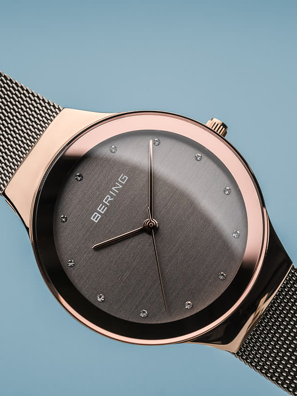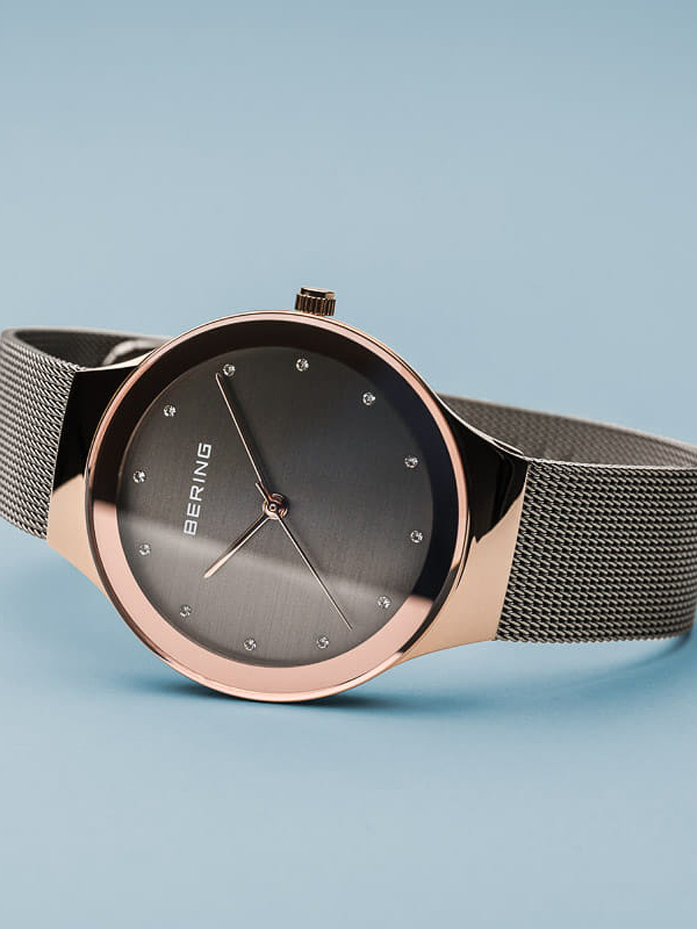 Met dit klassieke dameshorloge van Bering in rosé goud en grijze wijzerplaat ben je altijd stijlvol én bij de tijd.