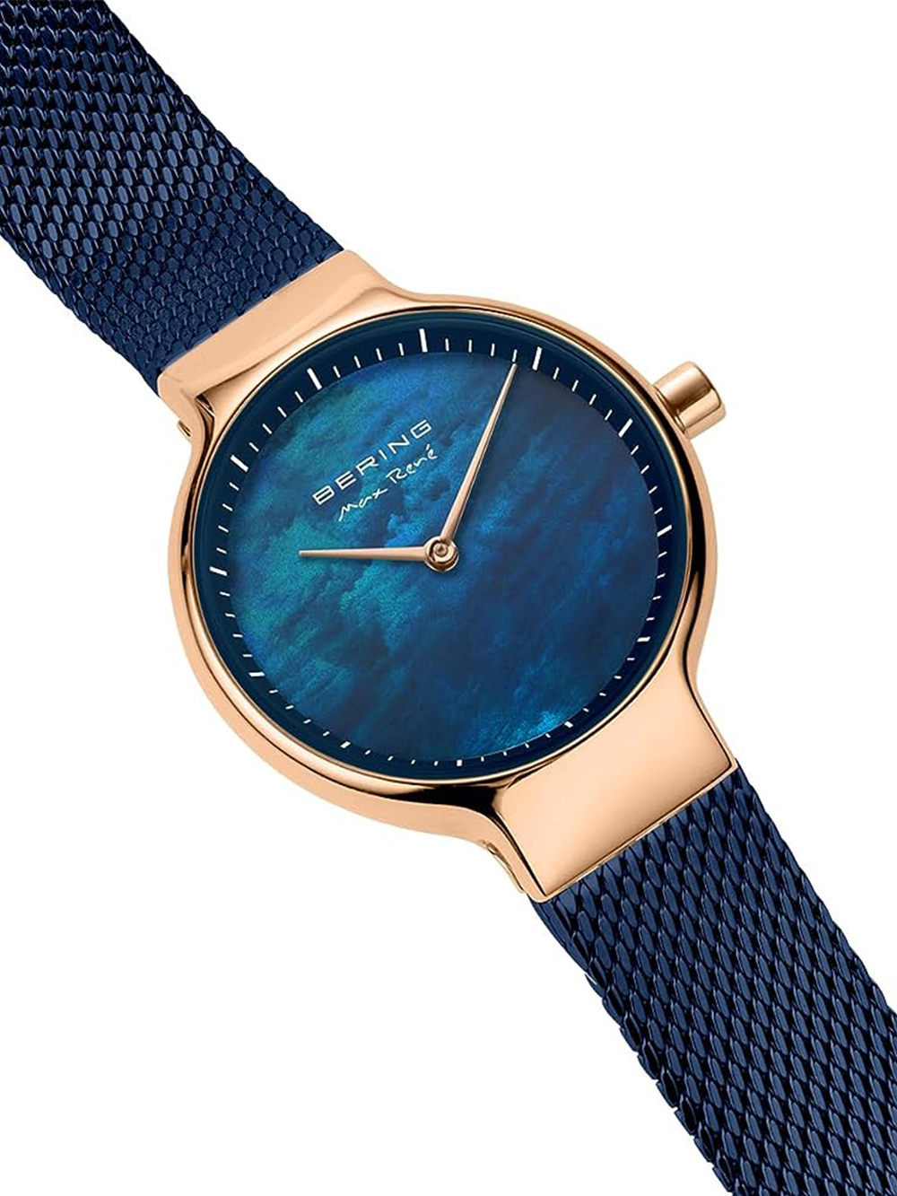 Omschrijving Stijlvol en tijdloos dameshorloge van Bering met een blauwe wijzerplaat en rosé gouden kast, waterbestendig tot 5 ATM en geleverd in een luxe verpakking inclusief garantiedocument.