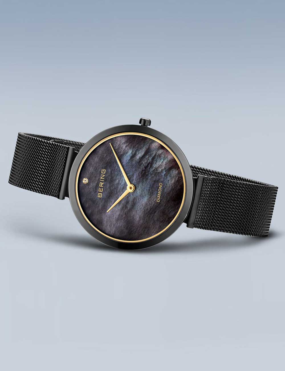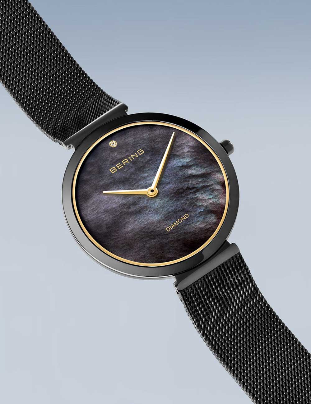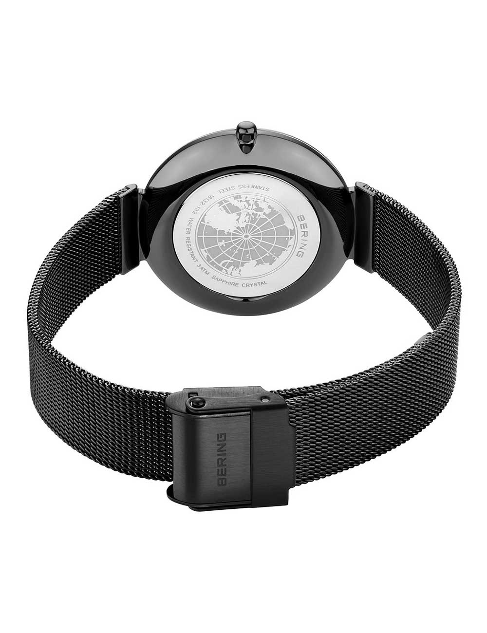 Verrijk je pols met dit klassieke dameshorloge van Bering, met een exclusieve zwarte wijzerplaat en glanzende roestvrijstalen kast en band.