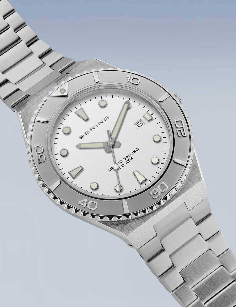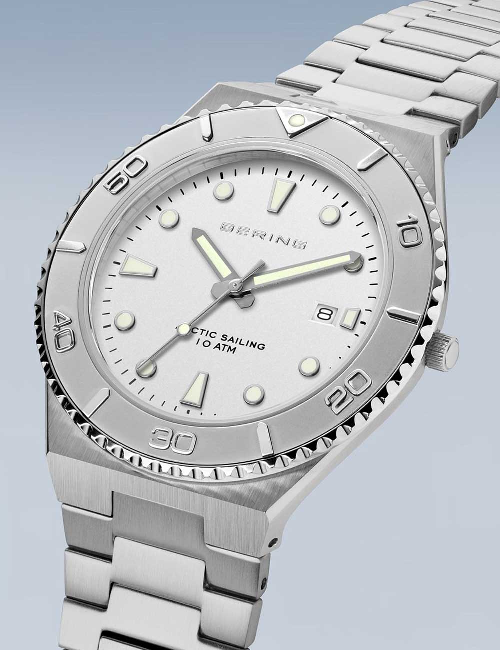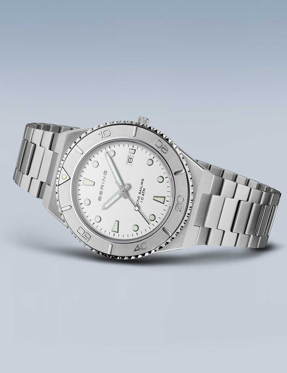 Met het Bering 18940-704 herenhorloge haal je een klassiek sportief polshorloge van 40 mm met 10 ATM waterbestendigheid in huis, voorzien van een witte wijzerplaat, quartz batterij en anti-reflecterend saffierglas.