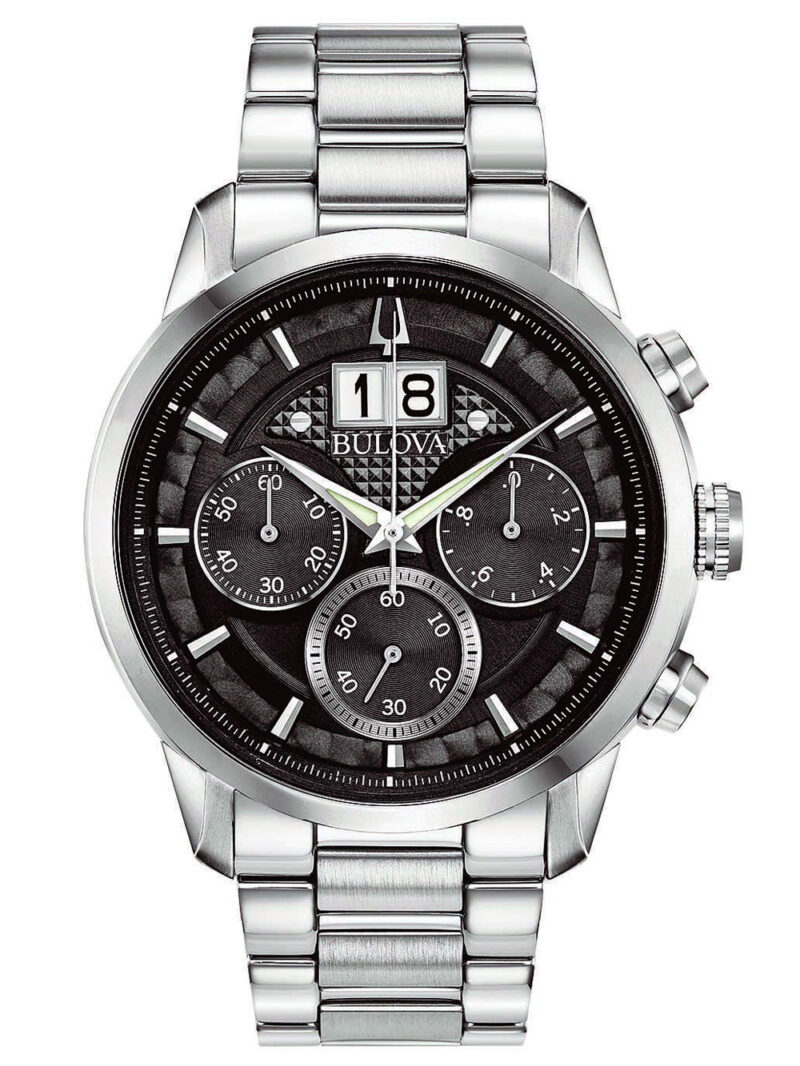 Ontdek de tijdloze elegantie van de Bulova 96B319 Sutton klassieke chronograaf, met een 44 mm zilveren kast, zwarte wijzerplaat en klassieke roestvrijstalen band – perfect voor de moderne man die graag stijlvol en punctueel is.
