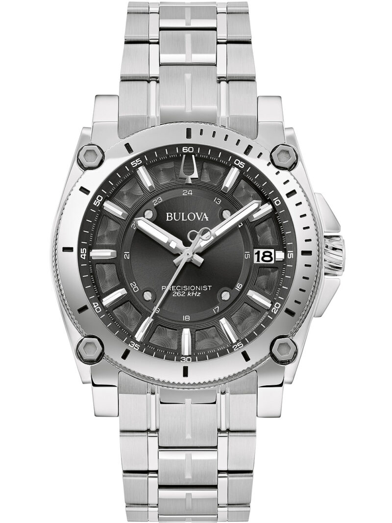 Omschrijving De Bulova 96B417 is een luxe herenhorloge van 40 mm met een elegante en moderne uitstraling, voorzien van een zwarte en grijze wijzerplaat, een quartz batterij en een waterbestendigheid van 10 ATM.