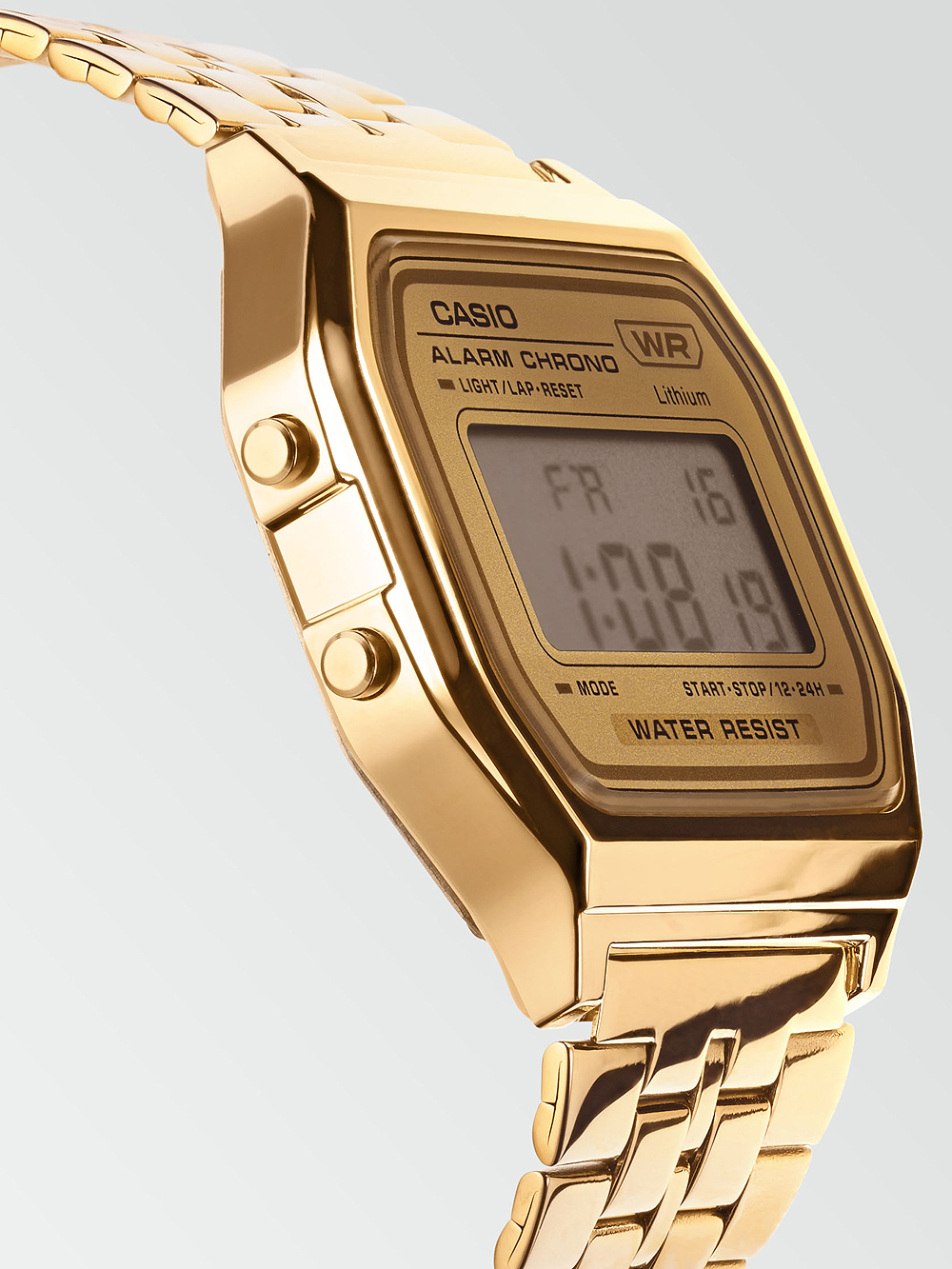 Specificaties Oppervlakteafwerking: GepolijstSerie: Vintage 33mmSluiting: ClipsluitingAanzetbreedte – Lugbreedte van Horlogeband (mm): 21Tijdfuncties: 12-24 uursweergave, Alarm, Automatische kalender, Datum, Dag, Uur, Minuut, Sec, StopfunctieBezel: VastKleur van Horlogekast: GoudMateriaal Horlogekast: HarsDikte Horlogekast (mm): 8Breedte van Horlogekast (mm): 33Achterkant Horlogekast: geschroefd, Roestvrij staal achterkantKleur Wijzerplaat : GoudenWijzerplaatweergave: DigitaalDoelgroep: UnisexHorlogeglas: AcrylglasVerlichting Horloge: LED-verlichtingType Uurwerk: Batterij (quartz)Soort Sluiting: ClipsluitingKleur Horlogeband: GoudHorlogeband: Roestvrij staalStijl Horloge: ModernMaximale Polsomtrek (mm): 205Inclusief: Horlogedoos, handleiding en garantiebewijs