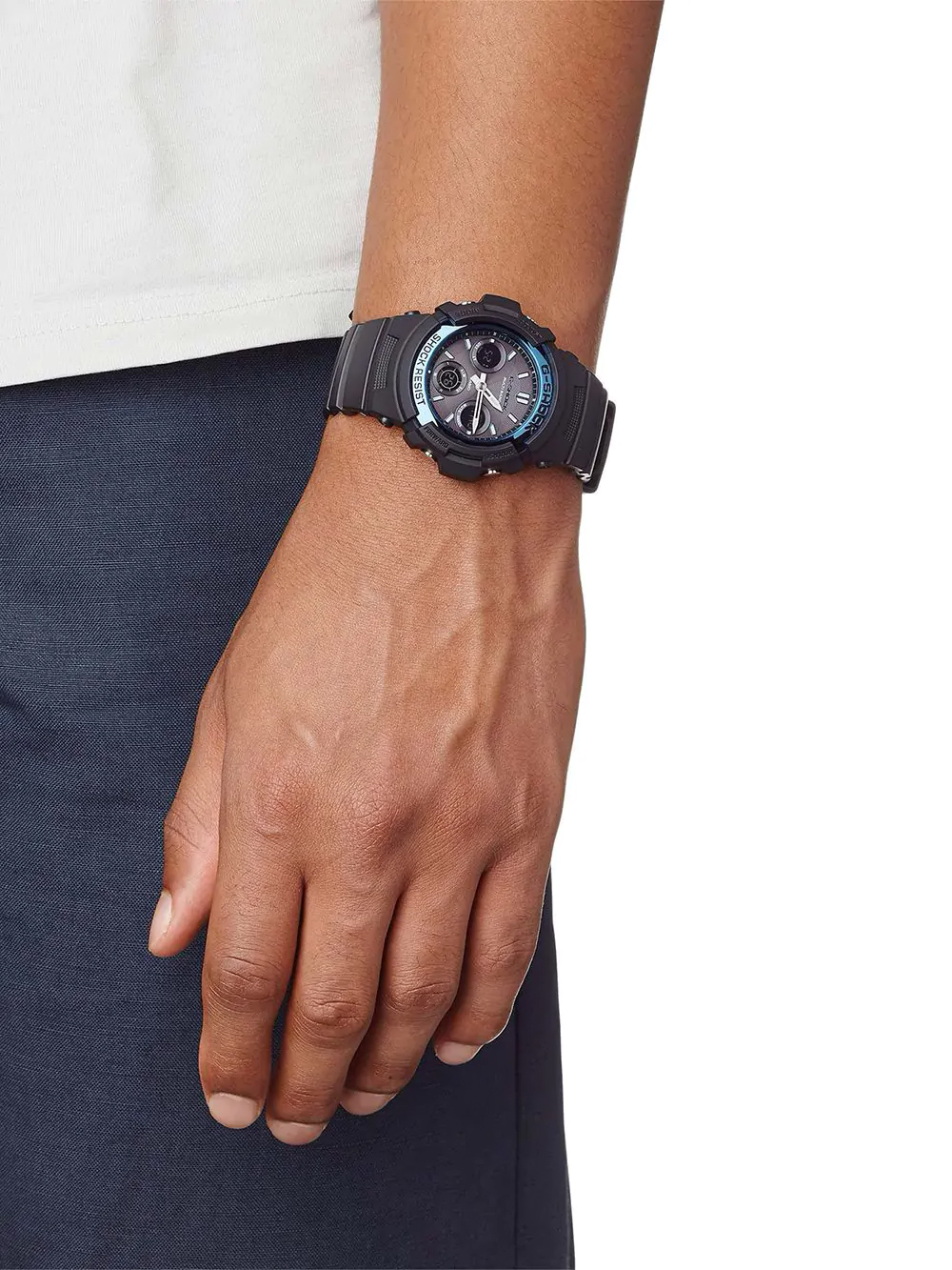 Omschrijving Het Casio AWG-M100A-1AER G-SHOCK Radiogestuurd Zonne-energie polshorloge is een stoer en betrouwbaar horloge met een analoge en digitale display, waterbestendigheid tot 20 ATM en vele handige functies zoals een chronograaf, wereldtijd en radiogestuurde tijd.