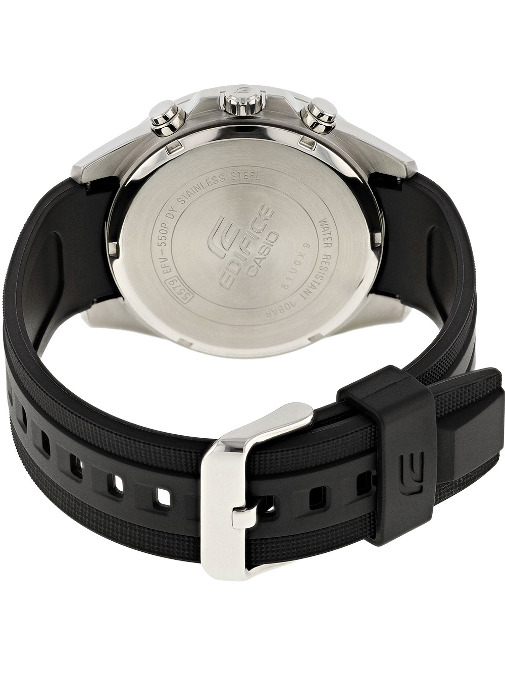 Het Casio EFV-550P-1AVUEF Edifice chronograaf polshorloge van 47 mm met een waterbestendigheid van 10 ATM is een sportief en stijlvol horloge voor heren, gemaakt van roestvrij staal en voorzien van een zwarte wijzerplaat en een stevige zwarte resin band.