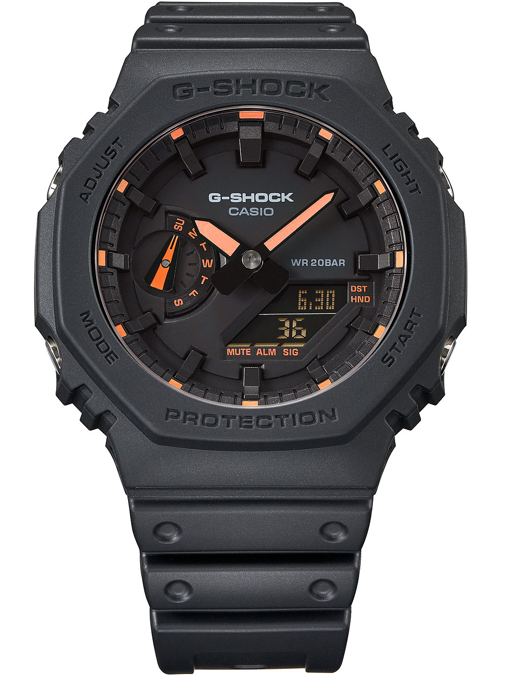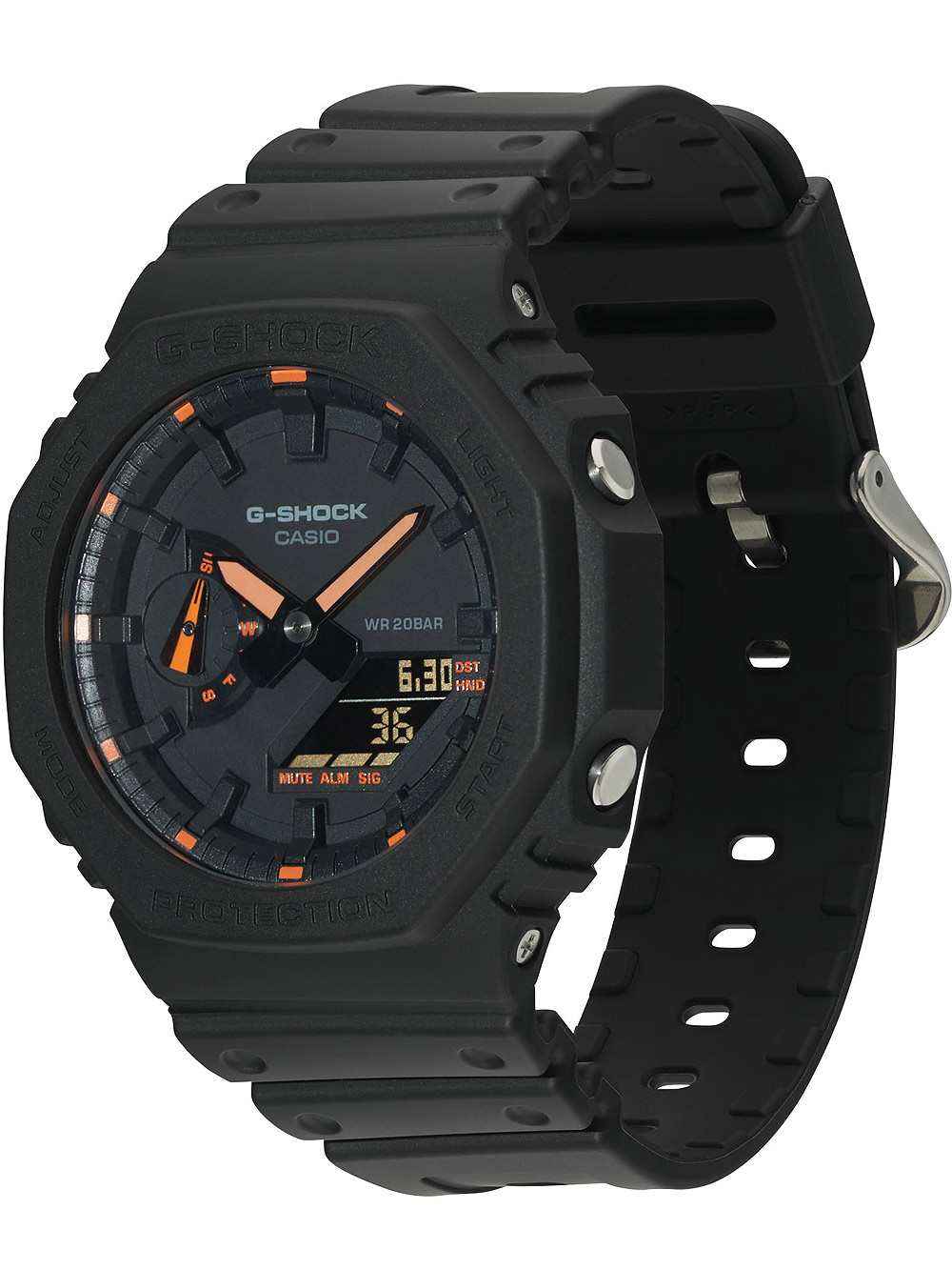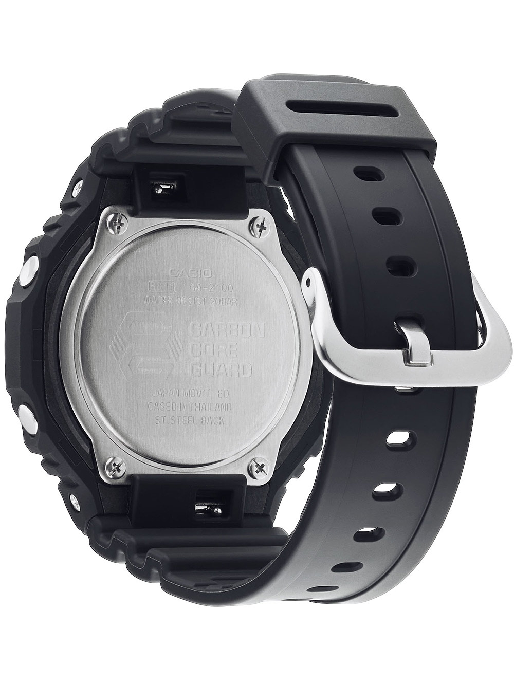 Omschrijving Het Casio GA-2100-1A4ER G-Shock heren polshorloge is een stoer en sportief horloge met een mat zwarte kast en band, waterdicht tot 20 ATM en voorzien van handige functies zoals een alarm, timer en wereldtijd.