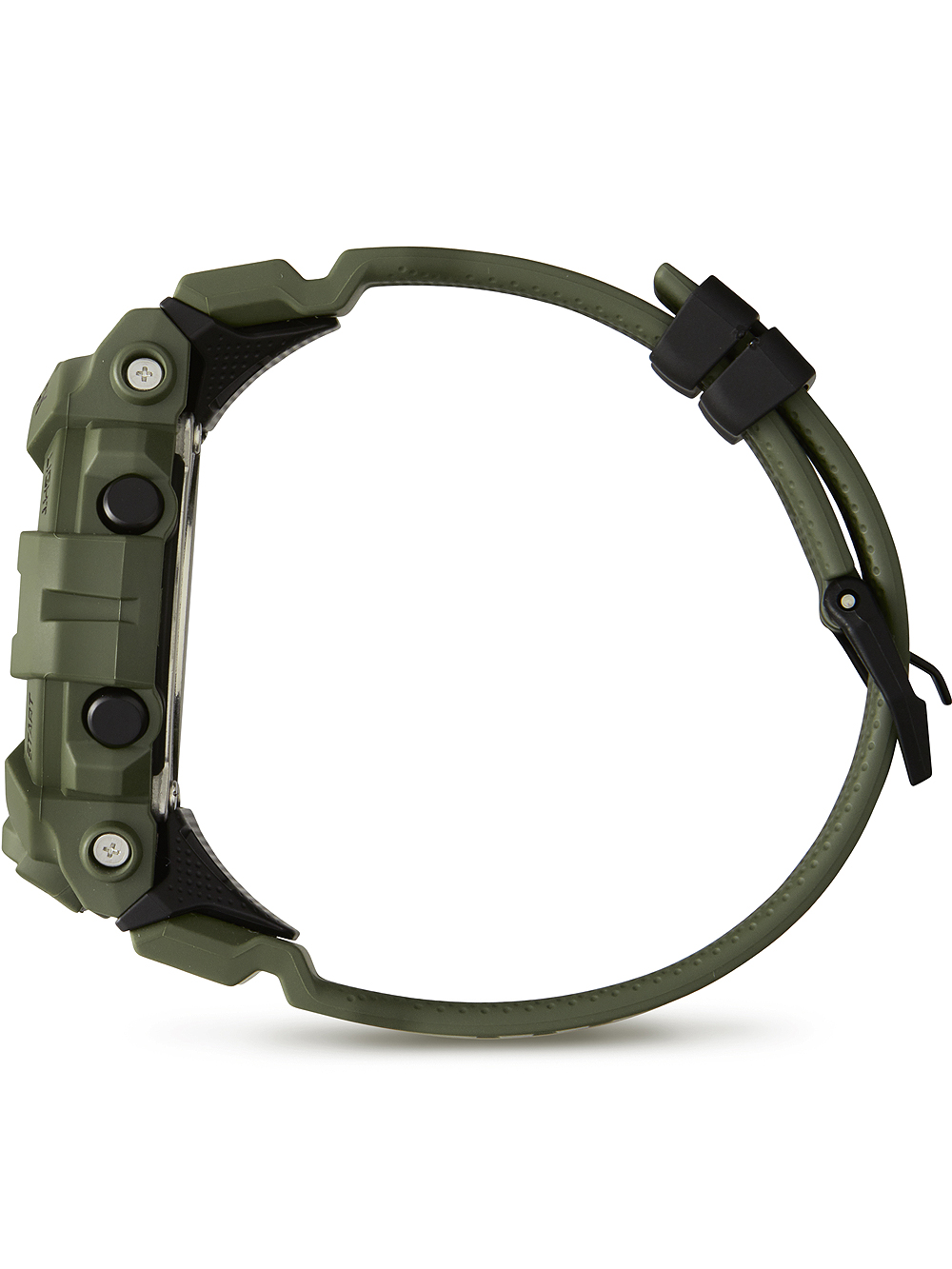 Specificaties Oppervlakteafwerking: MatSerie: G-ShockSluiting: GespsluitingAanzetbreedte – Lugbreedte van Horlogeband (mm): 27Tijdfuncties: 12-24 uursweergave, 5 day alarm, Automatische kalender, Blauwtooth, Uur, Minuut, Stappenteller, Telefoonzoeker, Sec, Schokbestendig, Stopfunctie, Timer, WereldtijdBezel: VastKleur van Horlogekast: GroenMateriaal Horlogekast: HarsDikte Horlogekast (mm): 14Breedte van Horlogekast (mm): 49Achterkant Horlogekast: geschroefd, Roestvrij staal achterkantKleur Wijzerplaat : ZwartWijzerplaatweergave: DigitaalDoelgroep: HerenHorlogeglas: Gehard mineraalglasVerlichting Horloge: Automatische LED-verlichtingType Uurwerk: Batterij (quartz)Soort Sluiting: GespsluitingKleur Horlogeband: GroenHorlogeband: HarsStijl Horloge: SportyWaterbestendigheid (ATM): 20Maximale Polsomtrek (mm): 220Inclusief: Horlogedoos, handleiding en garantiebewijs
