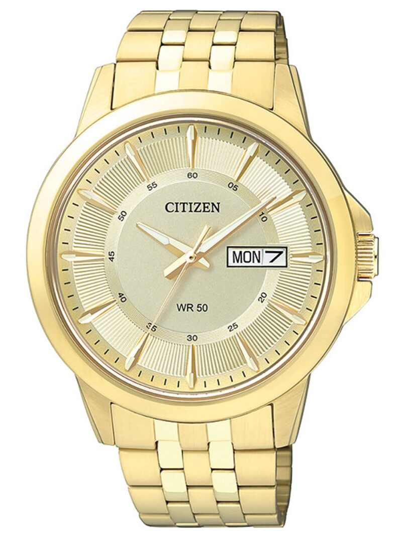 Met dit imposante Citizen BF2013-56P quartz herenhorloge van 41 mm en waterbestendig tot 5ATM ben je altijd op tijd én in stijl.
