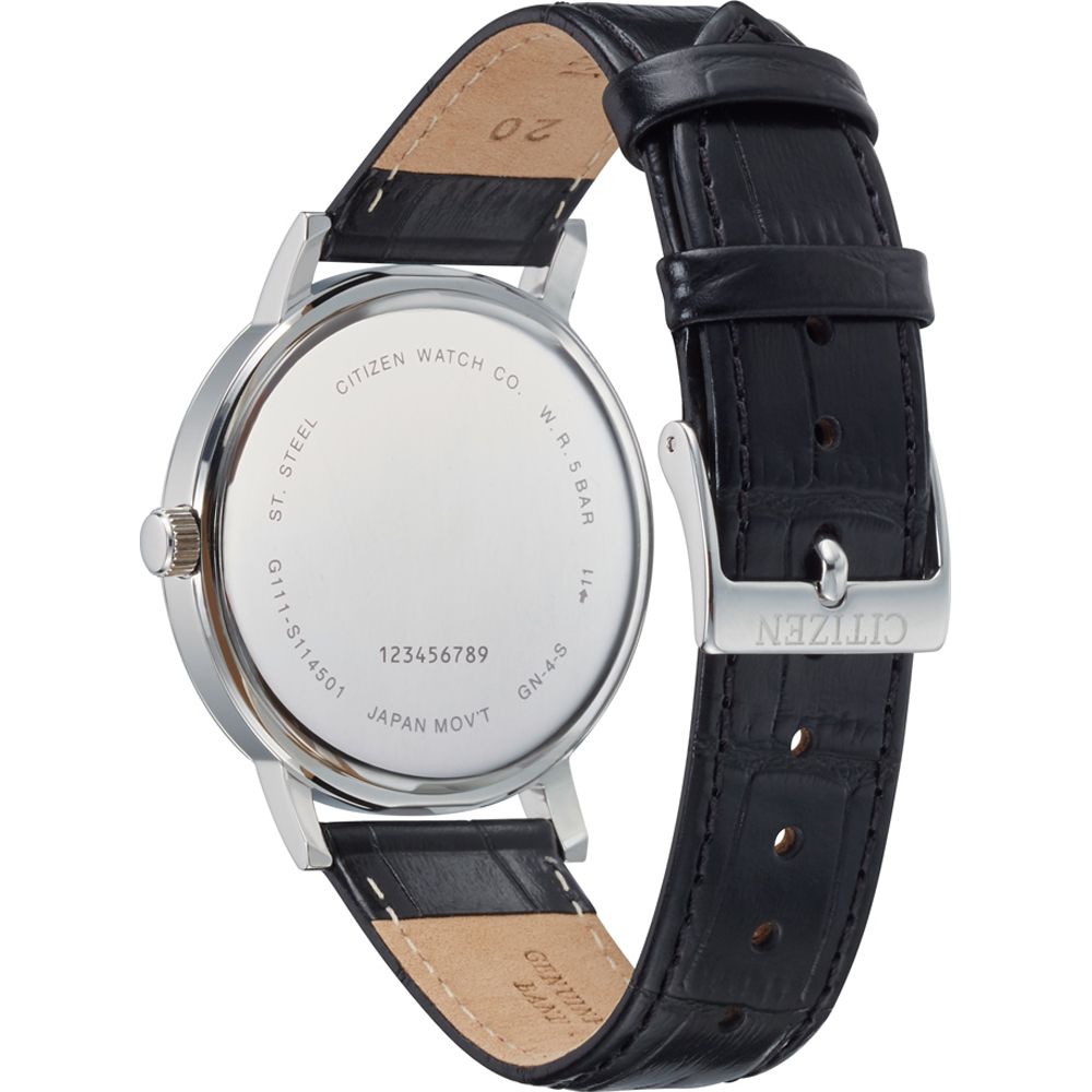 Omschrijving Dit glamoureuze heren polshorloge van Citizen, model BI5070-06A, heeft een witte wijzerplaat en een zilveren roestvrijstalen kast met een diameter van 41mm, en wordt geleverd met een zwarte leren band, perfect voor een elegante look.