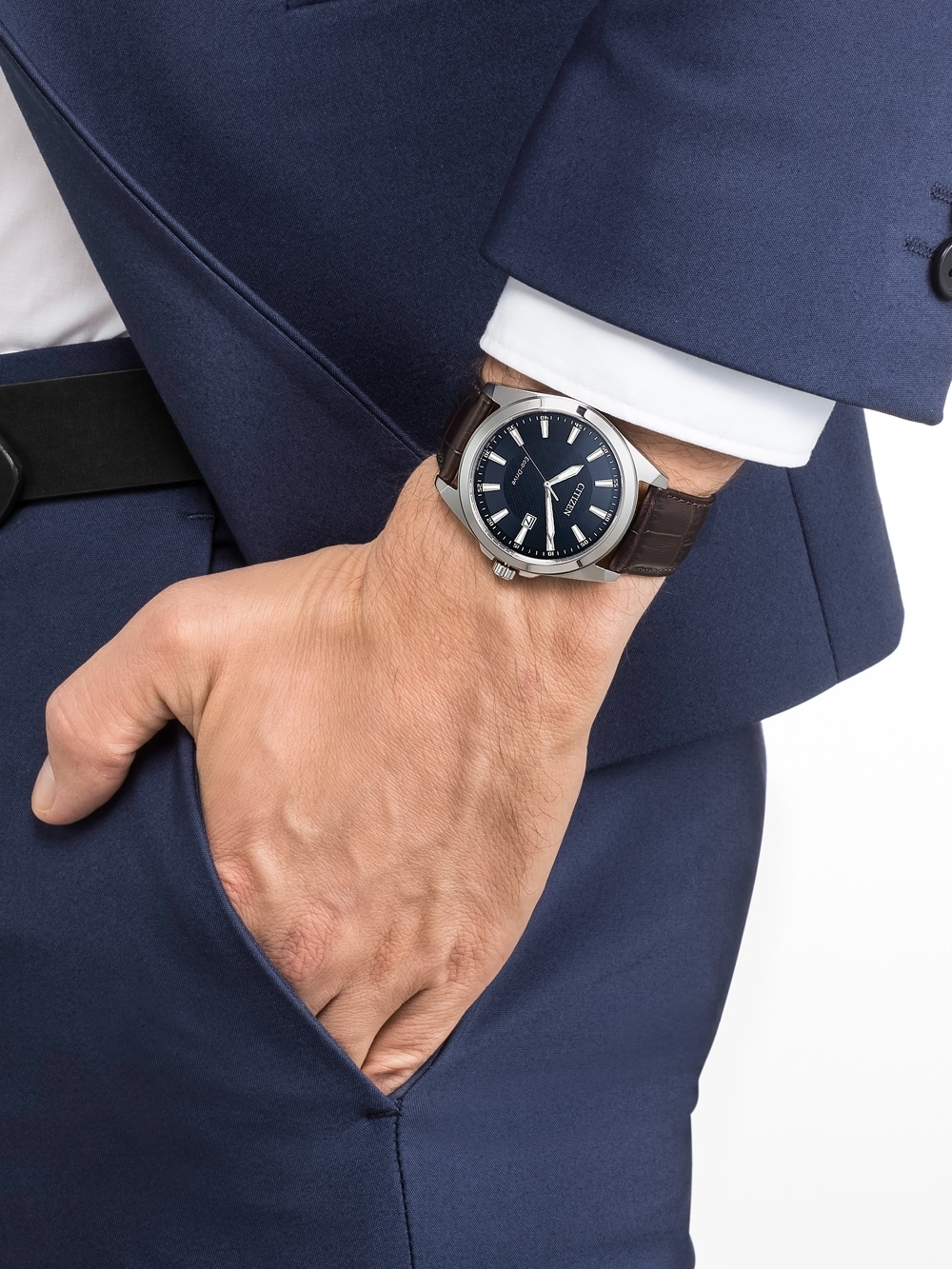 Omschrijving Met dit imposante heren polshorloge van Citizen uit de Classic serie ben je altijd bij de tijd, dankzij de Zonne-energie (quartz) beweging en handige functies zoals datum, uur, minuut en seconde, en dat allemaal in een tijdloos design met blauwe wijzerplaat en bruine leren band.