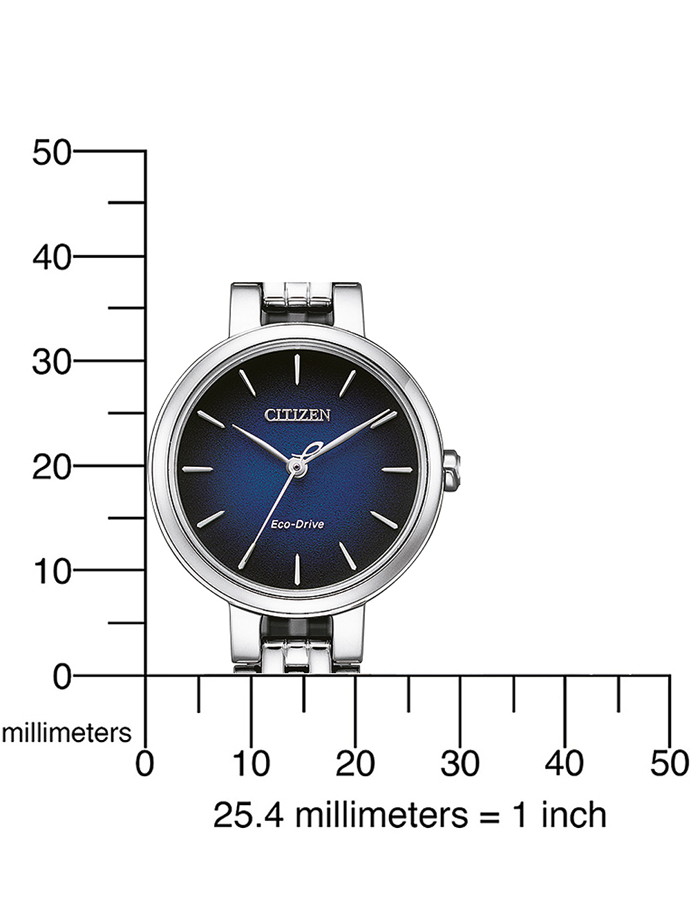 Het Citizen EM0990-81L Eco-Drive Elegance dames polshorloge is een elegant en stijlvol horloge met een blauwe wijzerplaat, zilveren kast en band, en is voorzien van een solar uurwerk en saffierglas.