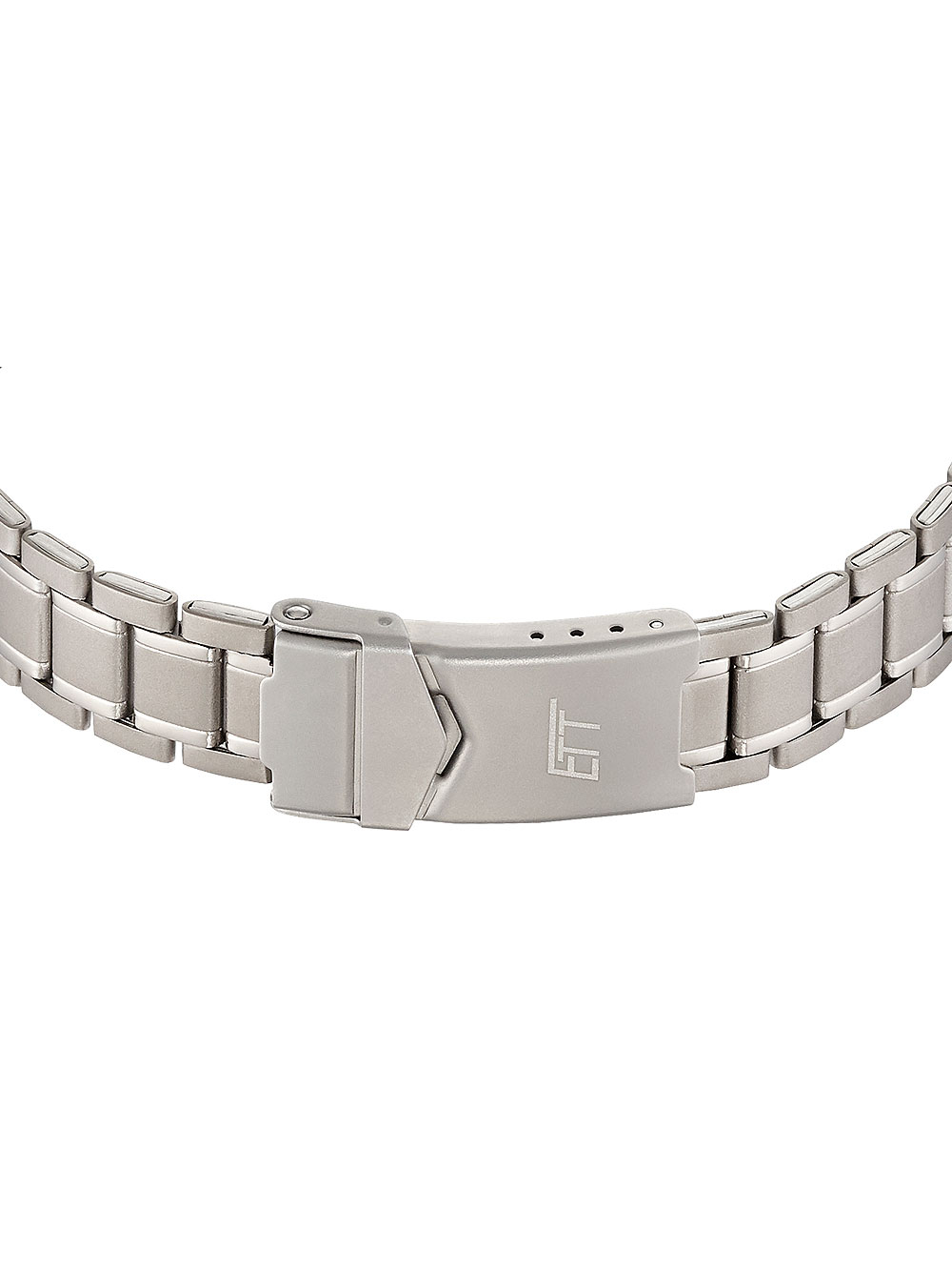 Kies voor stijl en duurzaamheid met dit ETT ELT-11446-21M Funk Zonne-energie Drive Basic Titan dames polshorloge, met een grijze wijzerplaat, zilveren titanium kast en armband, en handige functies zoals radiogestuurde tijd en overcharge bescherming.