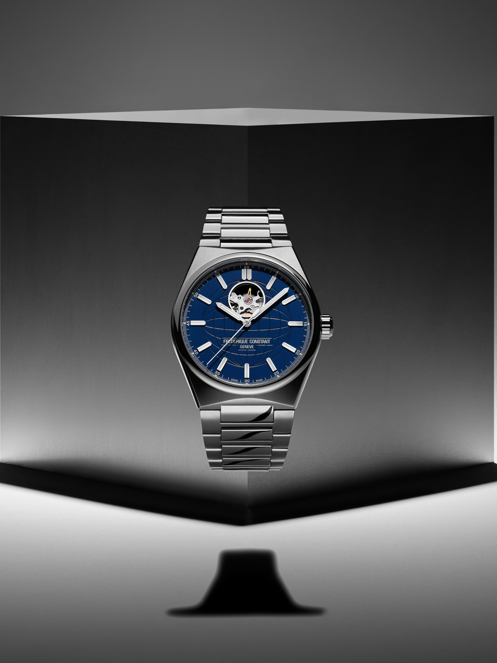 Omschrijving Het Frederique Constant FC-310N4NH6B Highlife automatisch herenhorloge met hartslagfunctie is een klassiek polshorloge van Zwitserse makelij, met een blauwe wijzerplaat, anti-reflecterend saffierglas en een mat gepolijste zilveren kast en band.