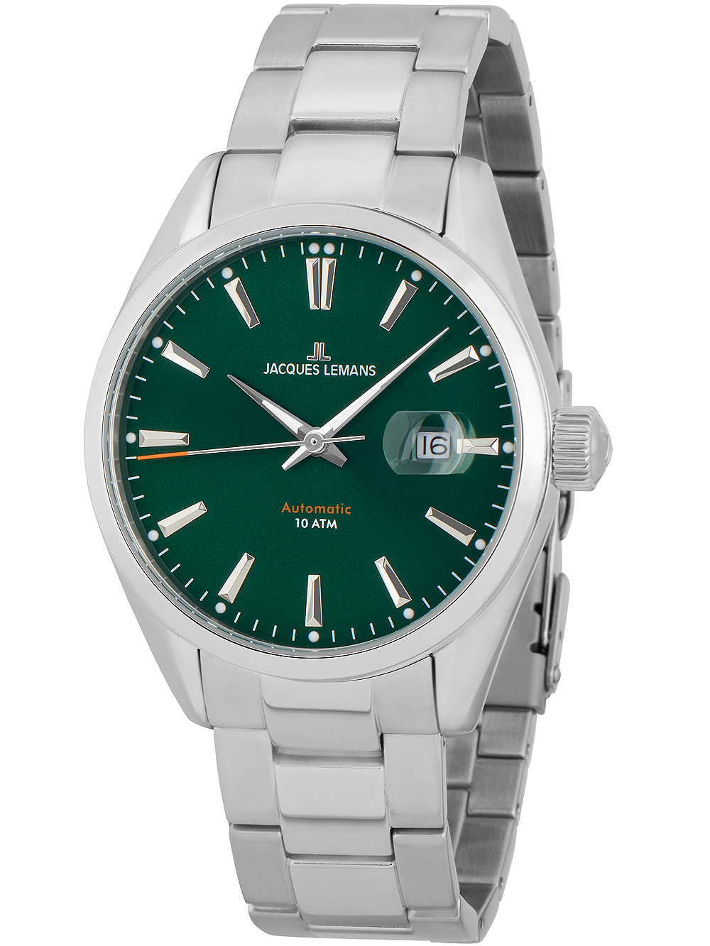 Omschrijving Het exclusieve Jacques Lemans heren polshorloge met automatisch uurwerk, groene wijzerplaat en zilveren kast is waterbestendig tot 10 ATM en bevat functies zoals datumweergave en verlichting, geleverd in doos met instructie, verpakking en garantiedocument.