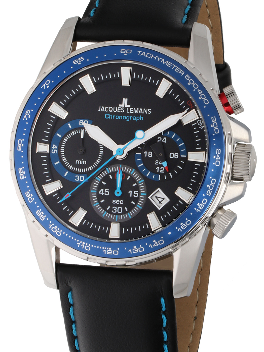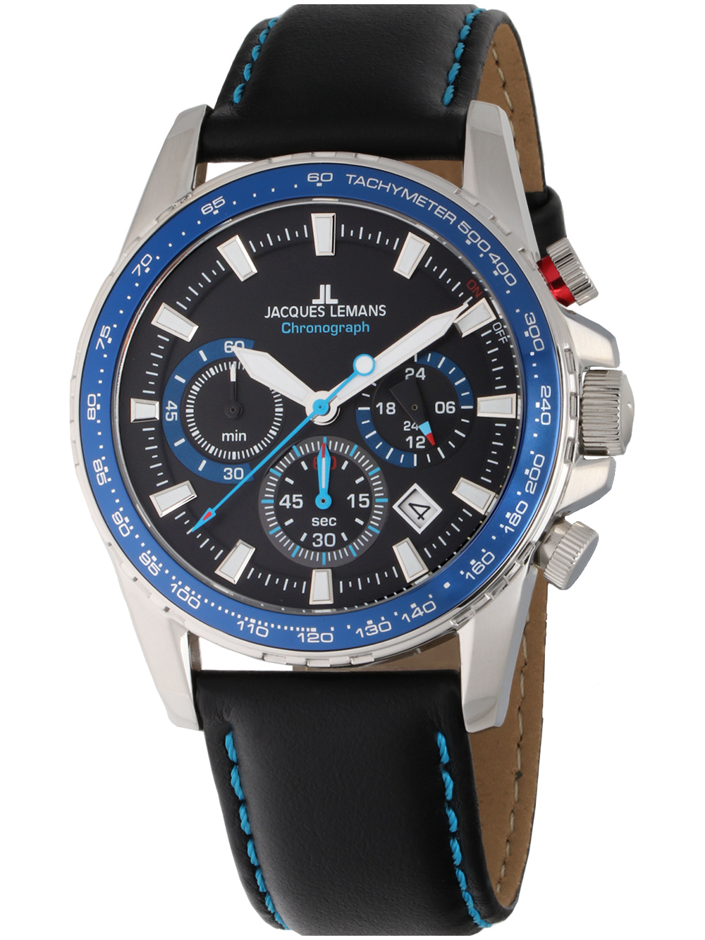 Ontdek de perfecte combinatie van stijl en functionaliteit met het Jacques Lemans 1-2099B.1 Liverpool chrono polshorloge, met een 42mm zwarte wijzerplaat, quartz batterij, 10ATM waterdichtheid en een sportieve zwarte kalfslederen band.
