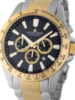 Het Jacques Lemans 1-2140H Liverpool chronograaf herenhorloge is een sportief en stijlvol polshorloge met een zwarte wijzerplaat, gouden en zilveren details en een waterbestendigheid van 10 ATM.