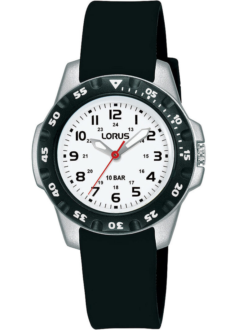 Omschrijving Dit stoere en sportieve Lorus kinderhorloge met een diameter van 30 mm en een waterdichtheid tot 10 ATM is perfect voor jongens en meisjes die graag buiten spelen.