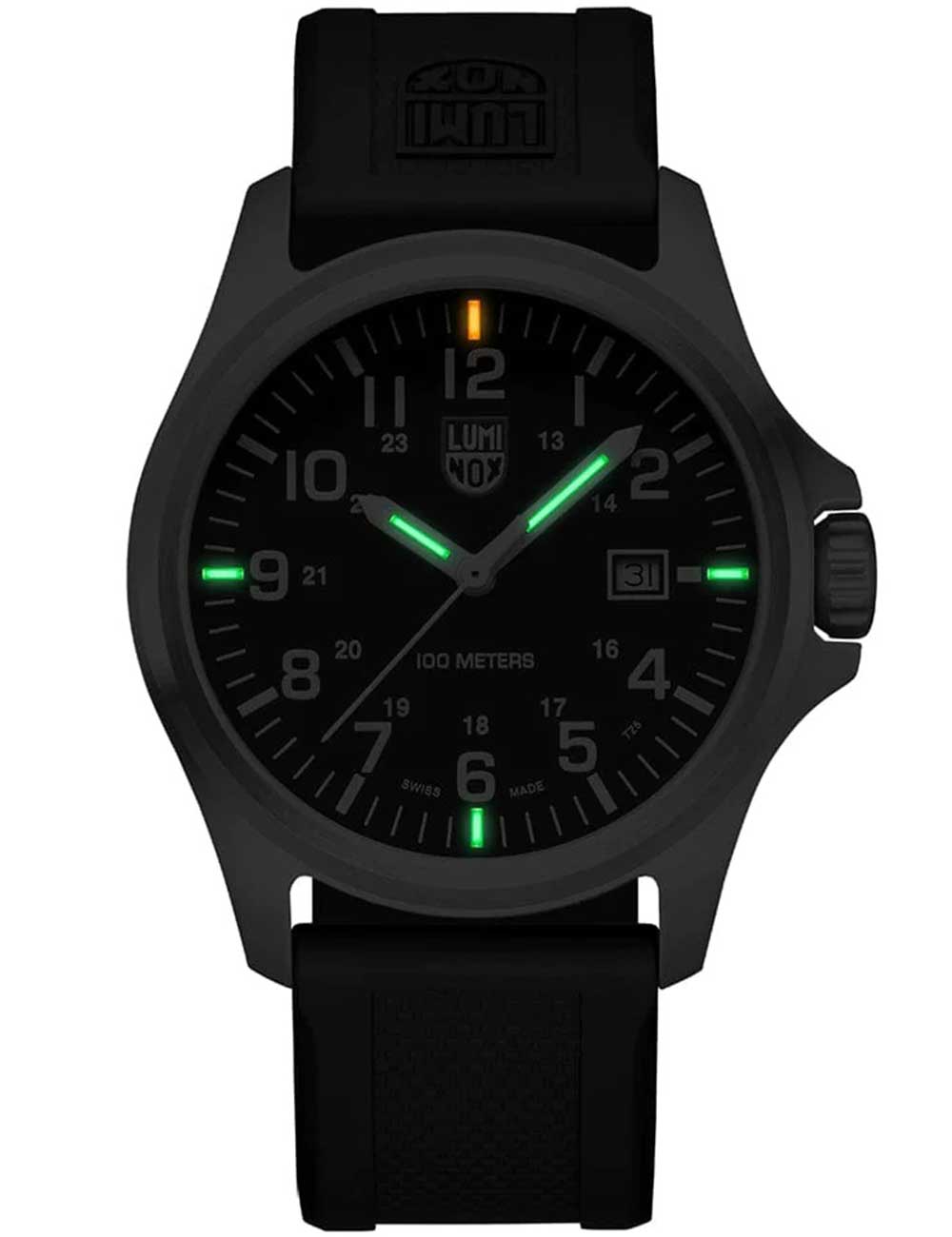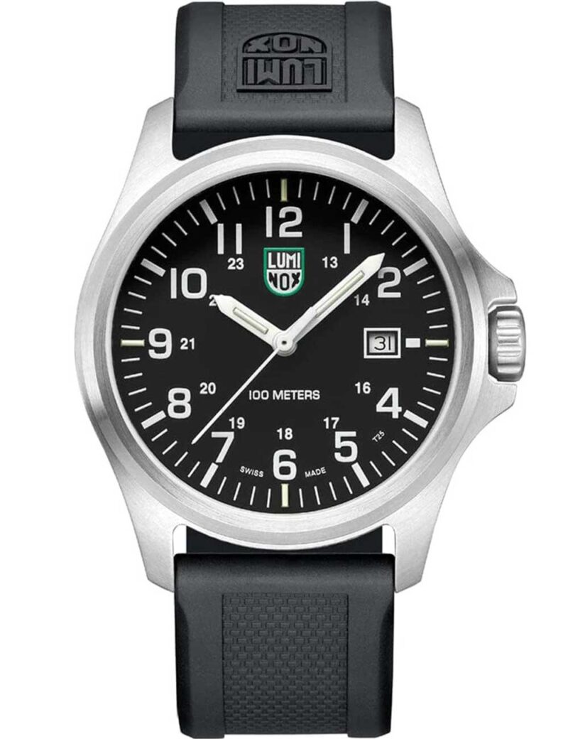 Specificaties Oppervlakteafwerking: MatSerie: Patagonia Steel 43 mmSluiting: GespsluitingAanzetbreedte – Lugbreedte van Horlogeband (mm): 23Tijdfuncties: Datum, Uur, Minuut, SecBezel: VastKleur van Horlogekast: ZilverMateriaal Horlogekast: Roestvrij staalDikte Horlogekast (mm): 12Breedte van Horlogekast (mm): 43Achterkant Horlogekast: geschroefd, Roestvrij staal achterkantKleur Wijzerplaat : ZwartWijzerplaatweergave: AnaloogDoelgroep: HerenHorlogeglas: Gehard mineraalglasVerlichting Horloge: Verlichte wijzers en indexenType Uurwerk: Batterij (quartz)Soort Sluiting: GespsluitingKleur Horlogeband: ZwartHorlogeband: SiliconStijl Horloge: SportyWaterbestendigheid (ATM): 10Maximale Polsomtrek (mm): 230Inclusief: Horlogedoos, handleiding en garantiebewijs