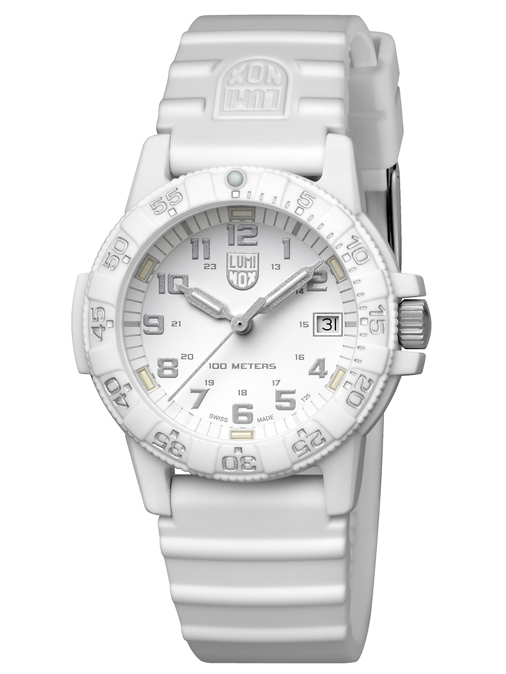 Omschrijving De Luminox XS.0307.WO Leerback Seaschildpad is een sportief polshorloge met een witte wijzerplaat, Zwitsers quartz uurwerk en een waterbestendigheid van 10 ATM.