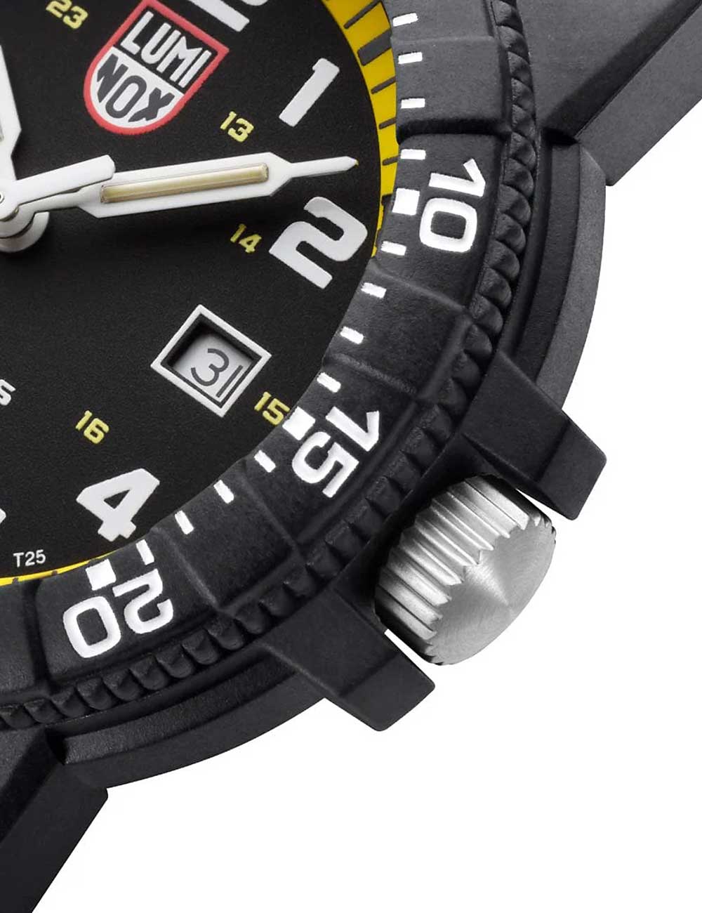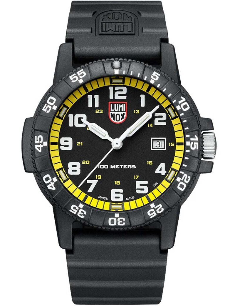 Met het Luminox XS.0325 Herenhorloge Leerback Seaschildpad Giant 44mm 100M ben je altijd bij de tijd dankzij de functies voor datum, uur, minuut en seconde, Swiss Made kwaliteit en stoere uitstraling met matzwarte kast en gele accenten.