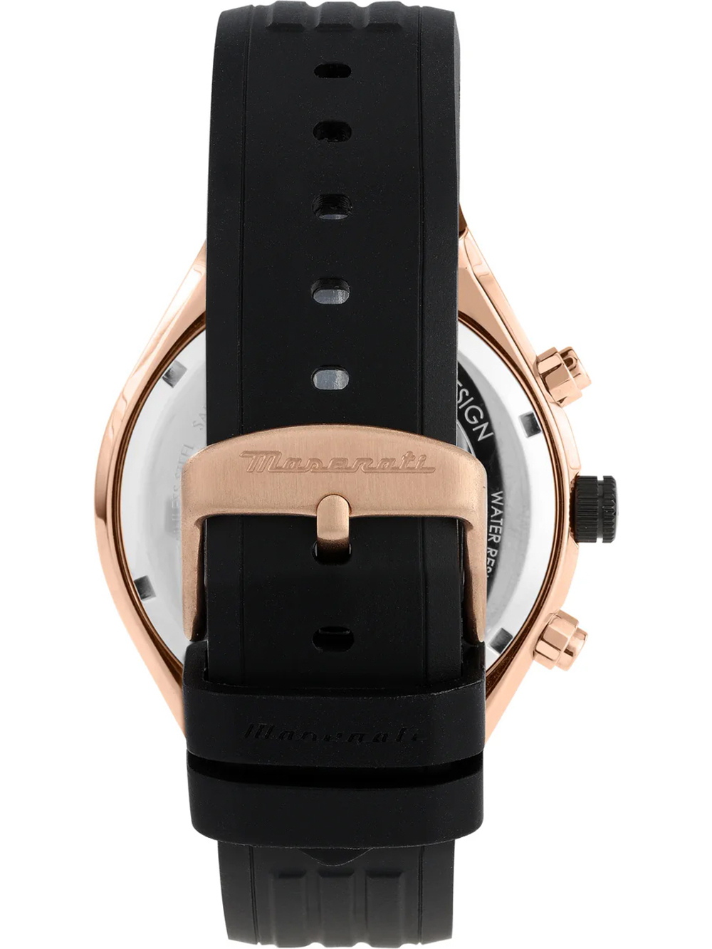 Omschrijving Met dit klassieke en sportieve Maserati polshorloge, model R8871642003, ben je altijd op tijd én in stijl, dankzij de zwarte wijzerplaat, rosé gouden details en siliconennnnn band.