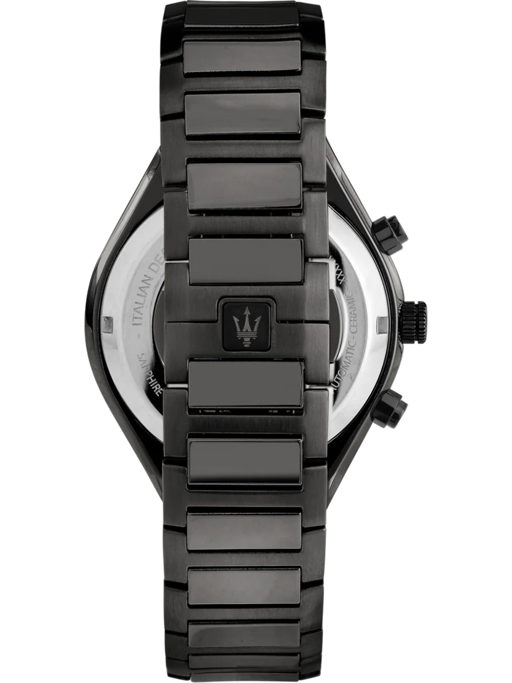 Omschrijving Met dit sophisticated Maserati polshorloge in zwart roestvrij staal en een diameter van 45mm, voorzien van 24-uurs, chronograaf en datum functies, ben je altijd bij de tijd en klaar voor elke sportieve uitdaging.