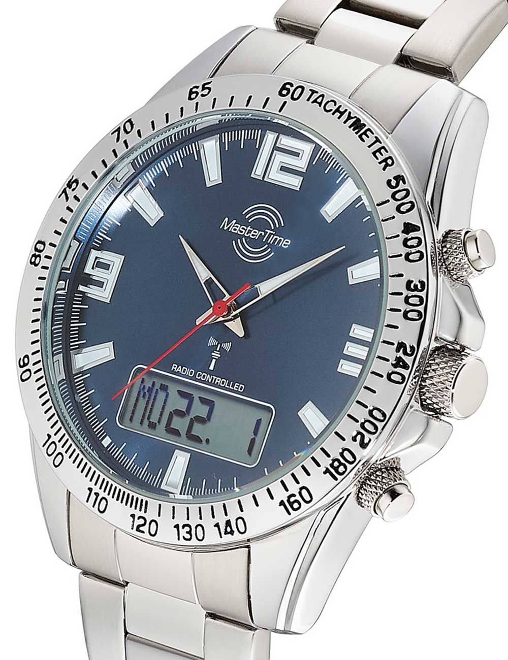 Met het Master Time MTGA-10875-32M herenhorloge ben je altijd op tijd en stijlvol dankzij de sportieve uitstraling, grote datum en chronograaf functies, waterbestendigheid tot 5 ATM en het radiocontrolled movement label.