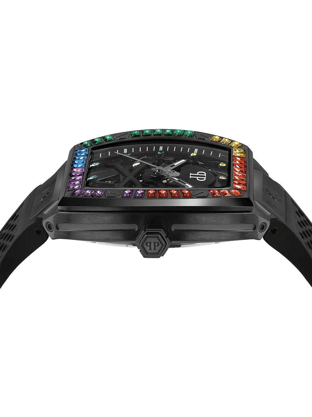 Het Philipp Plein PWBAA0621 polshorloge is een stoer en sportief herenhorloge met een automatisch uurwerk, zwarte wijzerplaat en Swarovski details, waterbestendig tot 5 ATM en geleverd in een box met instructies en garantiebewijs.