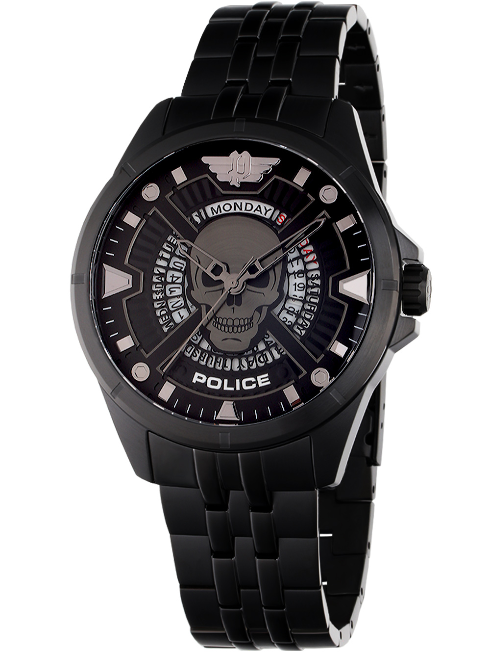 Het elegante Police Malawi herenhorloge is een must-have accessoire voor de moderne man, met een zwarte wijzerplaat, 3ATM waterbestendigheid en een matzwarte roestvrijstalen kast en band.