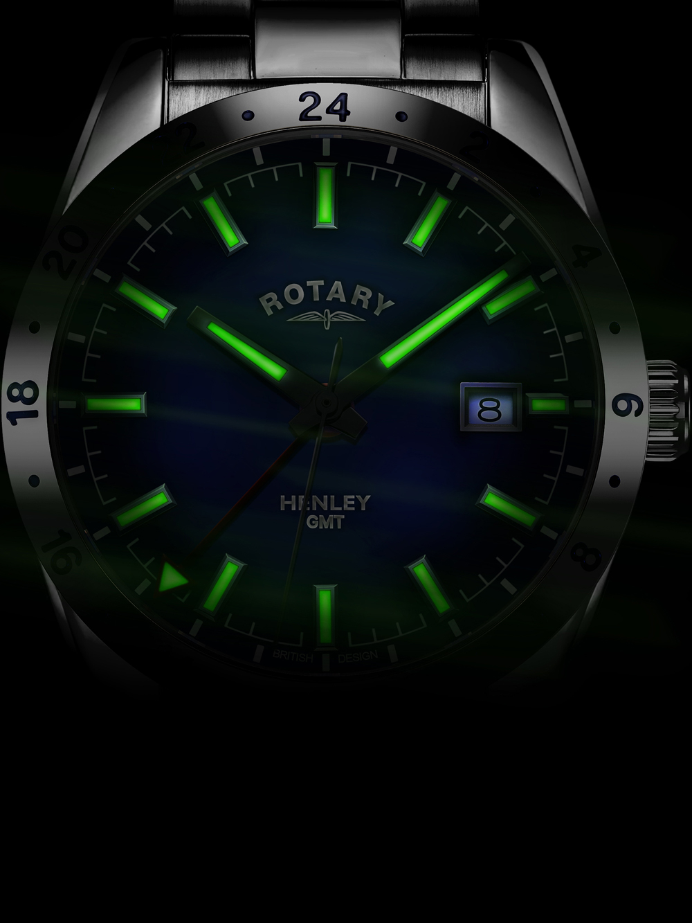 Omschrijving Het Rotary GB05176/05 Henley GMT heren polshorloge is een modern en stijlvol accessoire met 2 tijdzones, datumweergave en een blauwe wijzerplaat, gemaakt van duurzaam roestvrij staal en waterdicht tot 10 ATM.