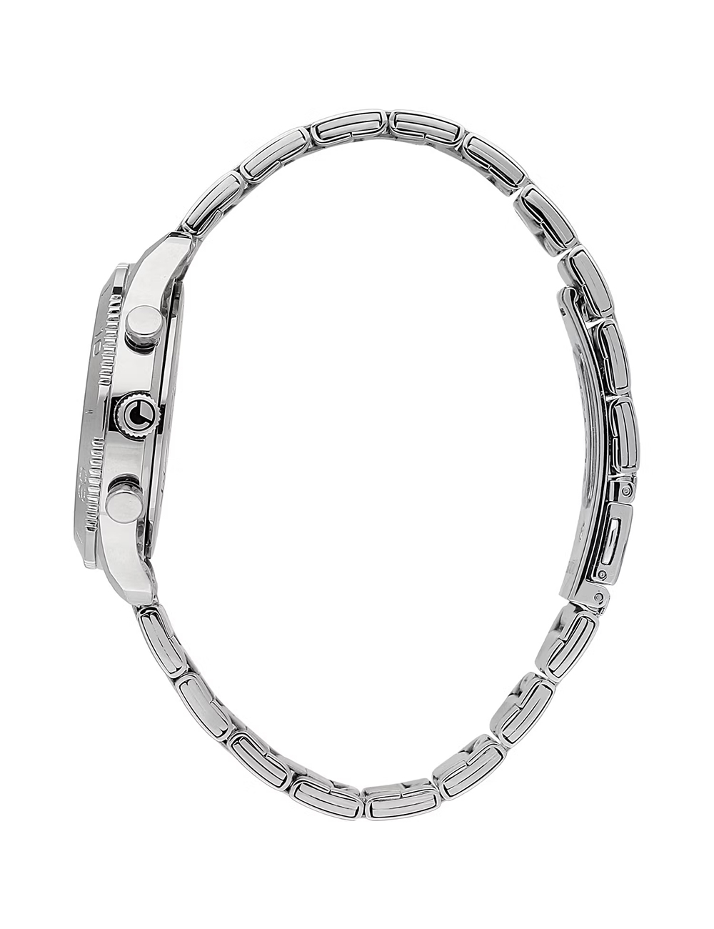 Specificaties Oppervlakteafwerking: Mat, GepolijstSerie: Serie 270 Heren Watch 37 mmSluiting: VouwsluitingAanzetbreedte – Lugbreedte van Horlogeband (mm): 20Tijdfuncties: 2 tijdzones, 24-hours, Uur, Minuut, SecBezel: VastKleur van Horlogekast: ZilverMateriaal Horlogekast: Roestvrij staalDikte Horlogekast (mm): 10Breedte van Horlogekast (mm): 37Achterkant Horlogekast: geperst, Roestvrij staal achterkantKleur Wijzerplaat : ZwartWijzerplaatweergave: AnaloogDoelgroep: HerenHorlogeglas: Gehard mineraalglasType Uurwerk: Batterij (quartz)Soort Sluiting: VouwsluitingKleur Horlogeband: ZilverHorlogeband: Roestvrij staalStijl Horloge: SportyWaterbestendigheid (ATM): 5Maximale Polsomtrek (mm): 200Inclusief: Horlogedoos, handleiding en garantiebewijs