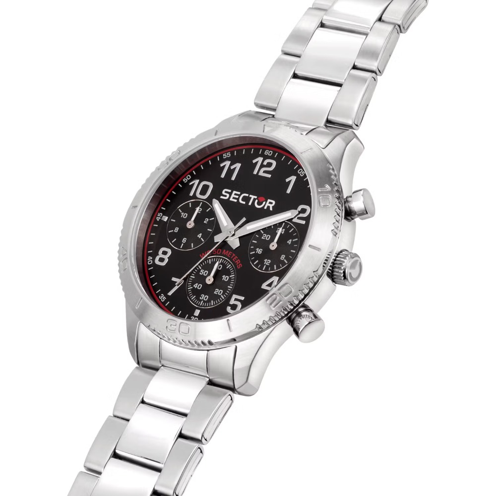 Omschrijving Dit sportieve herenhorloge van Sector, model R3253578017 uit de Serie 270, heeft een diameter van 37 mm en is voorzien van 2 tijdzones, 24-uurs aanduiding en een matted en polished zwarte wijzerplaat, afgewerkt met een zilveren roestvrijstalen kast en band, en is waterbestendig tot 5 ATM.