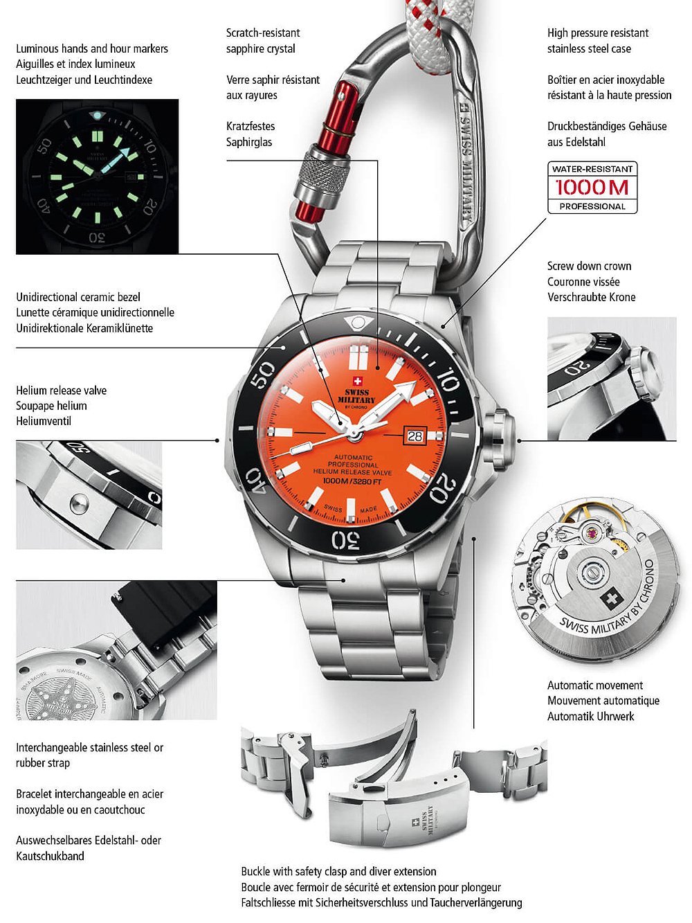 Swiss Military SMA34092.03 automatisch duikershorloge 45 mm 100ATM