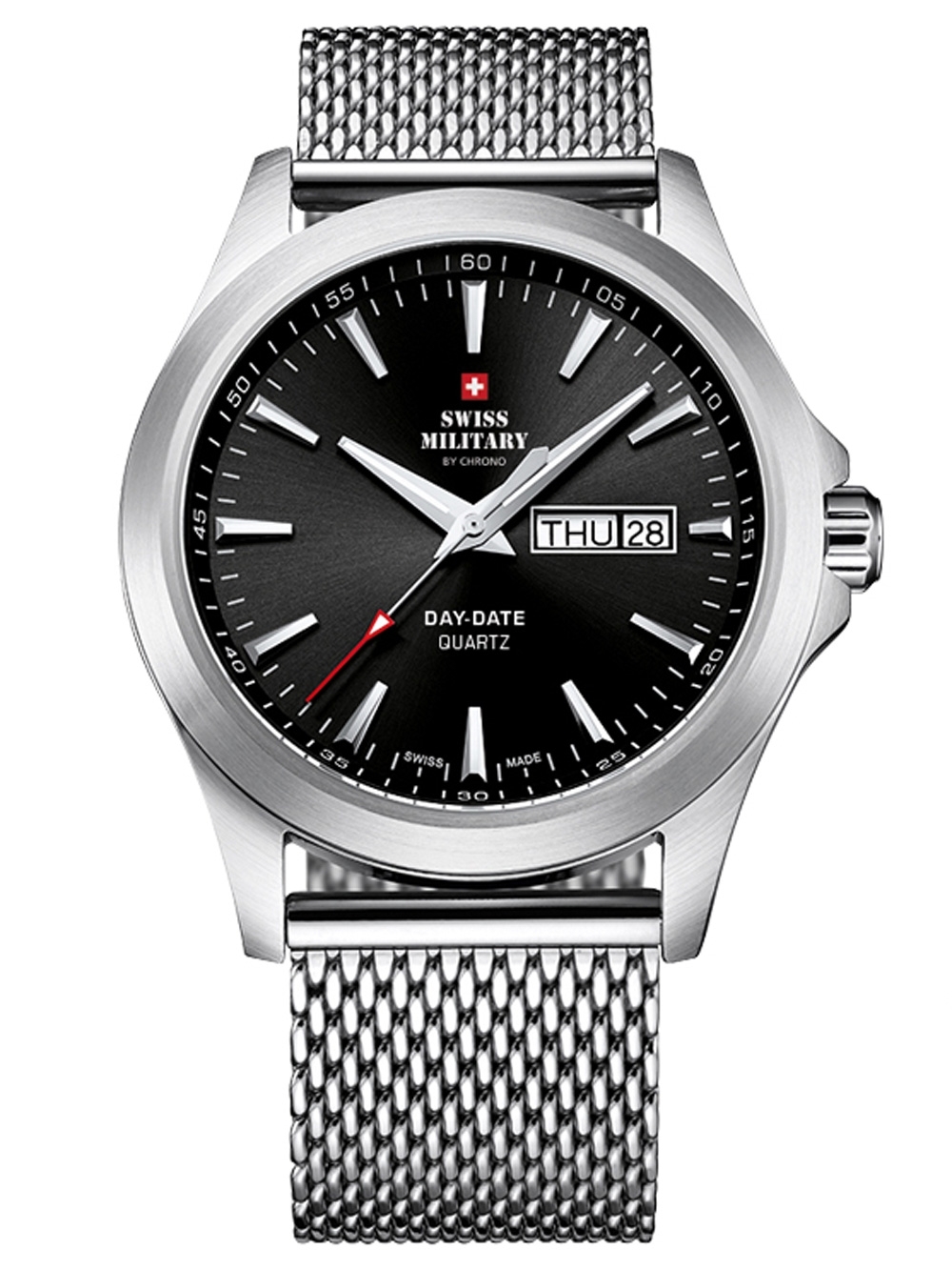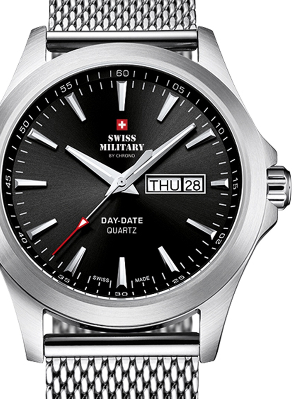 Omschrijving Met dit Swiss Military polshorloge van Swiss Military, model SMP36040.01, ben je als man altijd bij de tijd dankzij de verschillende functies en het elegante design met zilveren kast en robuuste schakelband.