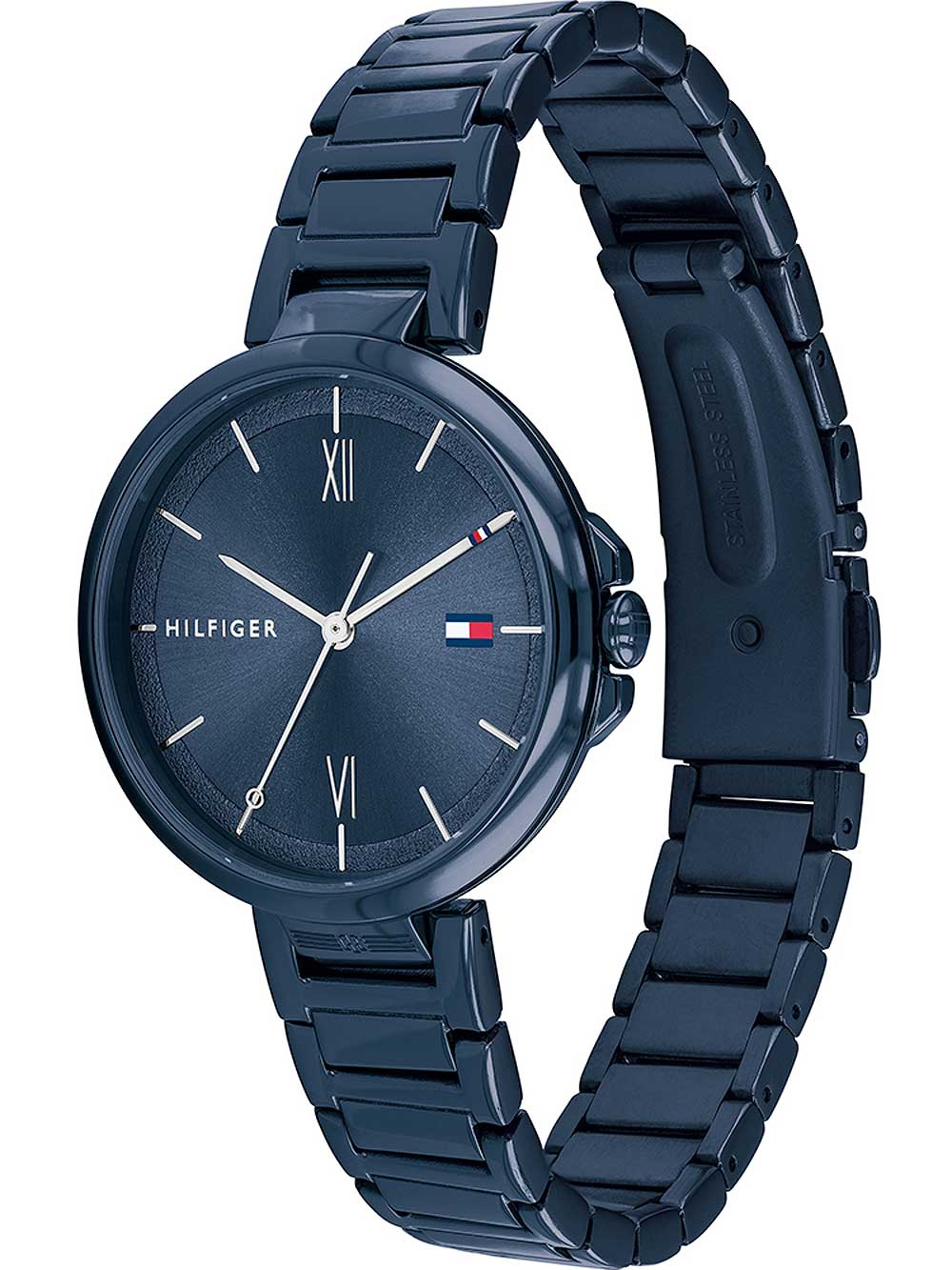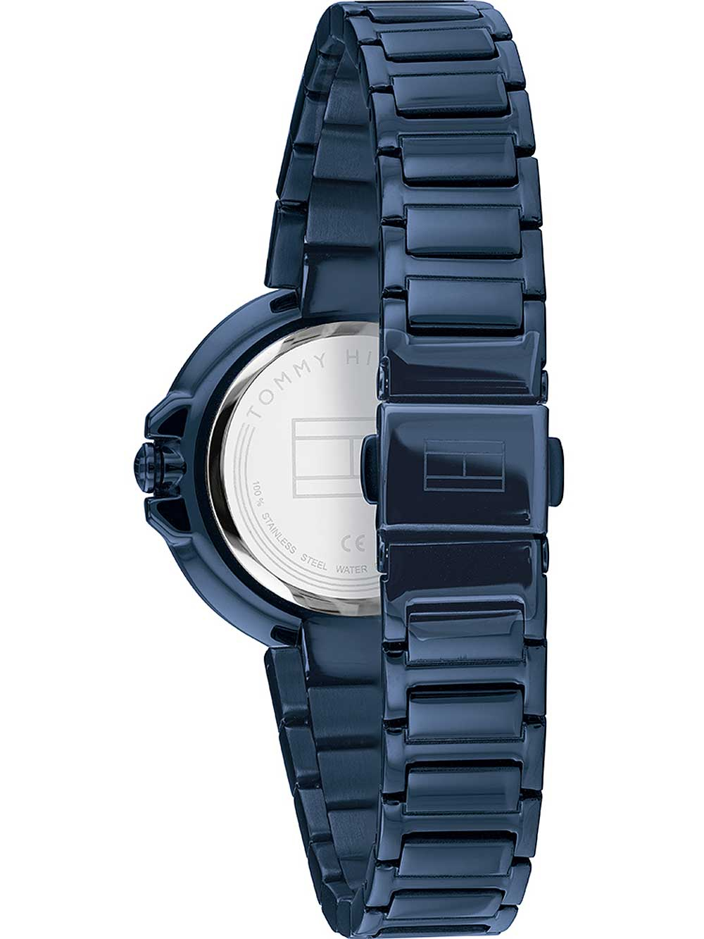Omschrijving Voor de moderne en imposante dame: het blauwe Tommy Hilfiger polshorloge 1782205 met een diameter van 34mm, 3ATM waterbestendig en voorzien van een batterij (quartz) uurwerk en imposante blauwe roestvrijstalen band met vouwsluiting.