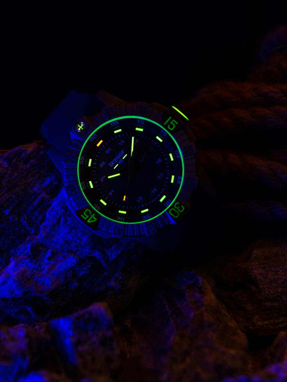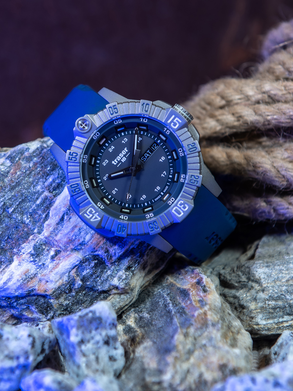 Het Traser H3 110667 tactisch grijs titanium herenhorloge is een stijlvol en functioneel accessoire met een matgrijze wijzerplaat, Zwitsers quartz uurwerk en een waterbestendigheid van 20 ATM, inclusief verlichte wijzers en indexen voor optimale zichtbaarheid.