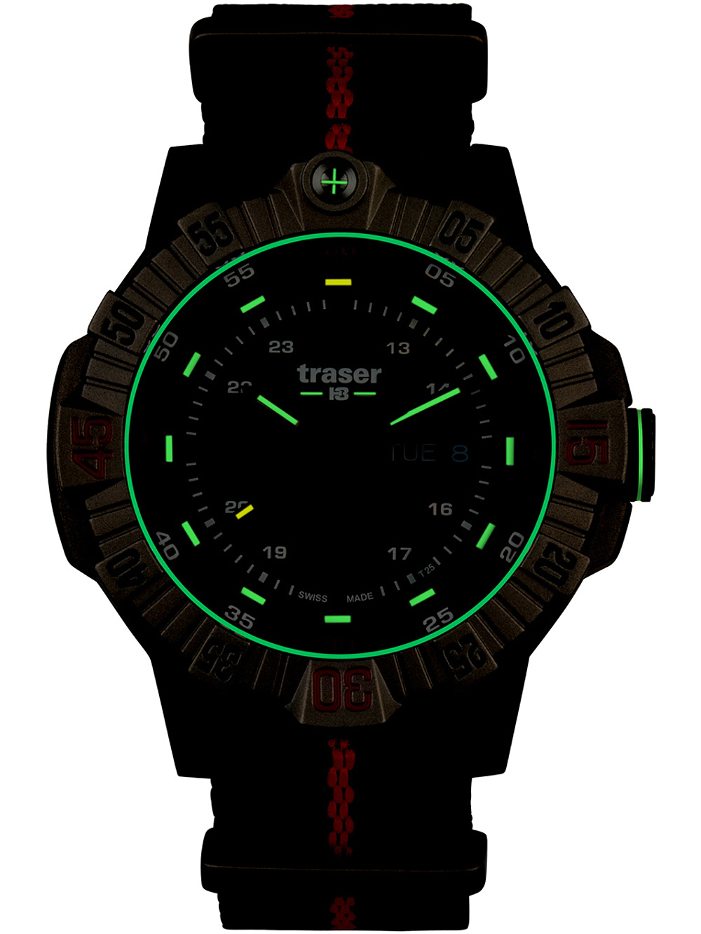 Specificaties Oppervlakteafwerking: MatSerie: Tactical Bruin Titan 46mmSluiting: GespsluitingAanzetbreedte – Lugbreedte van Horlogeband (mm): 22Tijdfuncties: Datum, Dag, Uur, Minuut, SecBezel: Bidirectioneel,DraaibaarKleur van Horlogekast: ZilverMateriaal Horlogekast: TitaniumDikte Horlogekast (mm): 14Breedte van Horlogekast (mm): 46Achterkant Horlogekast: geschroefd, Roestvrij staal achterkantKleur Wijzerplaat : BruinWijzerplaatweergave: AnaloogDoelgroep: HerenHorlogeglas: Anti-reflecterend, SaffierglasVerlichting Horloge: Verlichte wijzers en indexen, trigalight®Type Uurwerk: Batterij (quartz)Soort Sluiting: GespsluitingKleur Horlogeband: Bruin, RoodHorlogeband: TextileStijl Horloge: SportyWaterbestendigheid (ATM): 20Maximale Polsomtrek (mm): 230Inclusief: Horlogedoos, handleiding en garantiebewijs