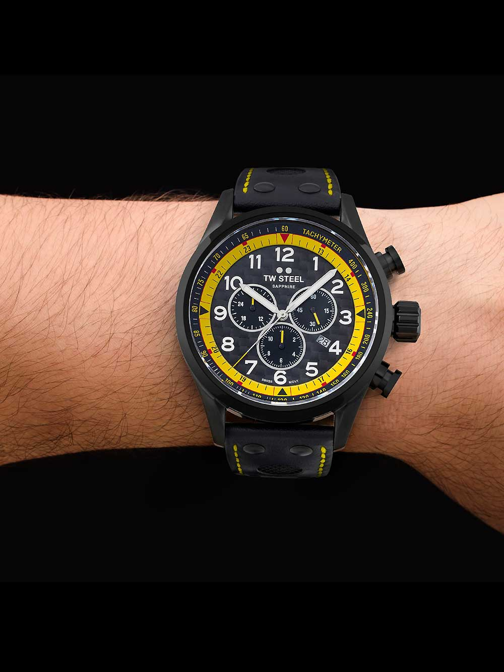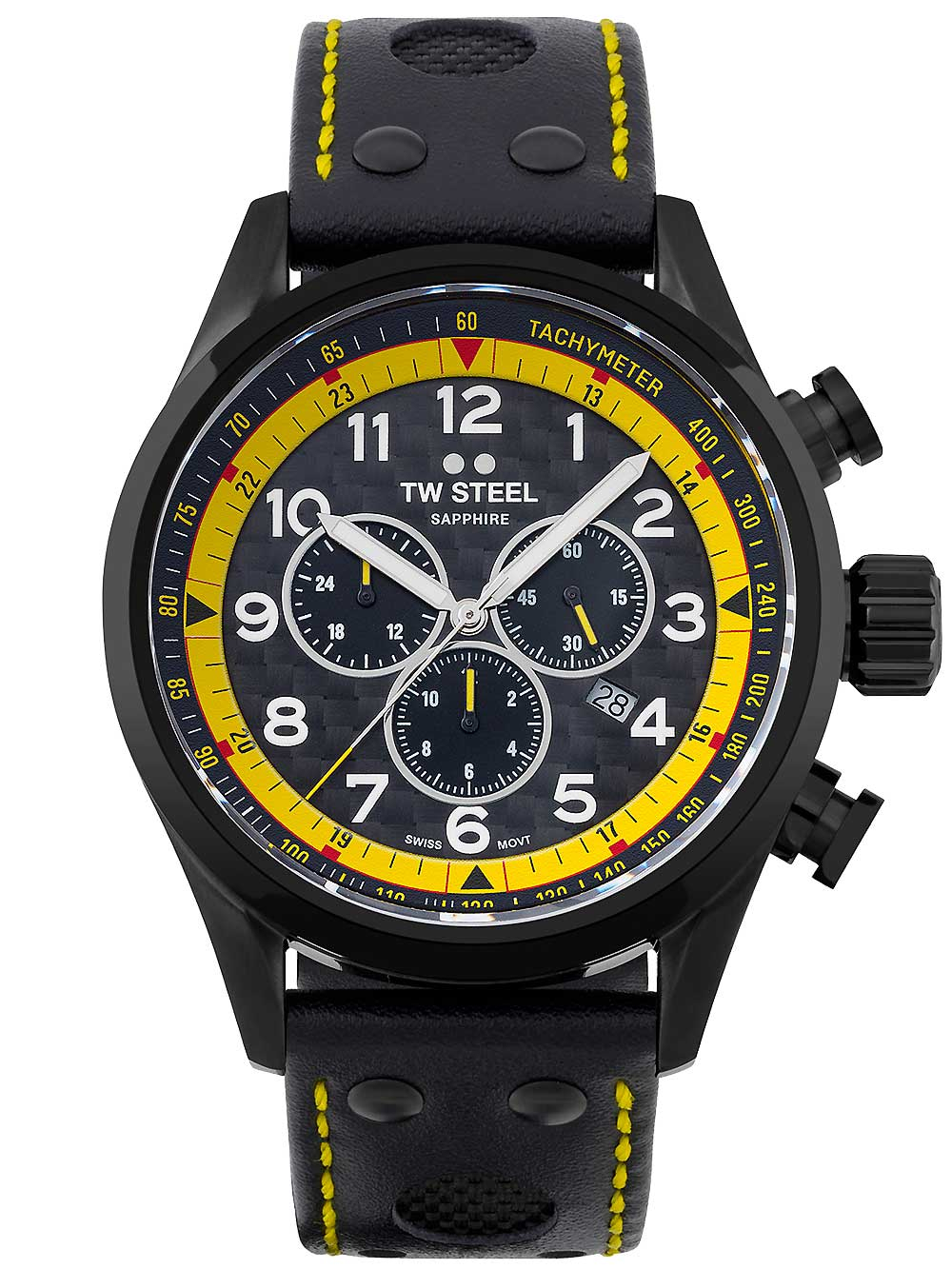 Omschrijving Het stoere en sportieve TW Steel SVS301 Coronel WTCR polshorloge met chronograaf en datumweergave, gemaakt van roestvrij staal en voorzien van een zwarte wijzerplaat en kalfsleren band, is een must-have voor elke man die houdt van stijl en functionaliteit.