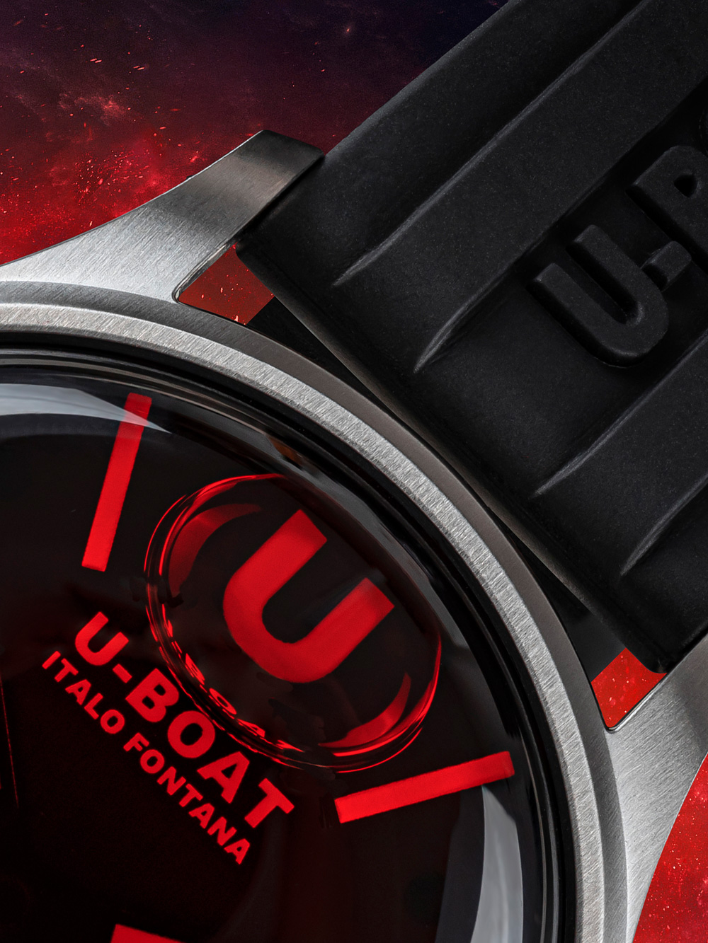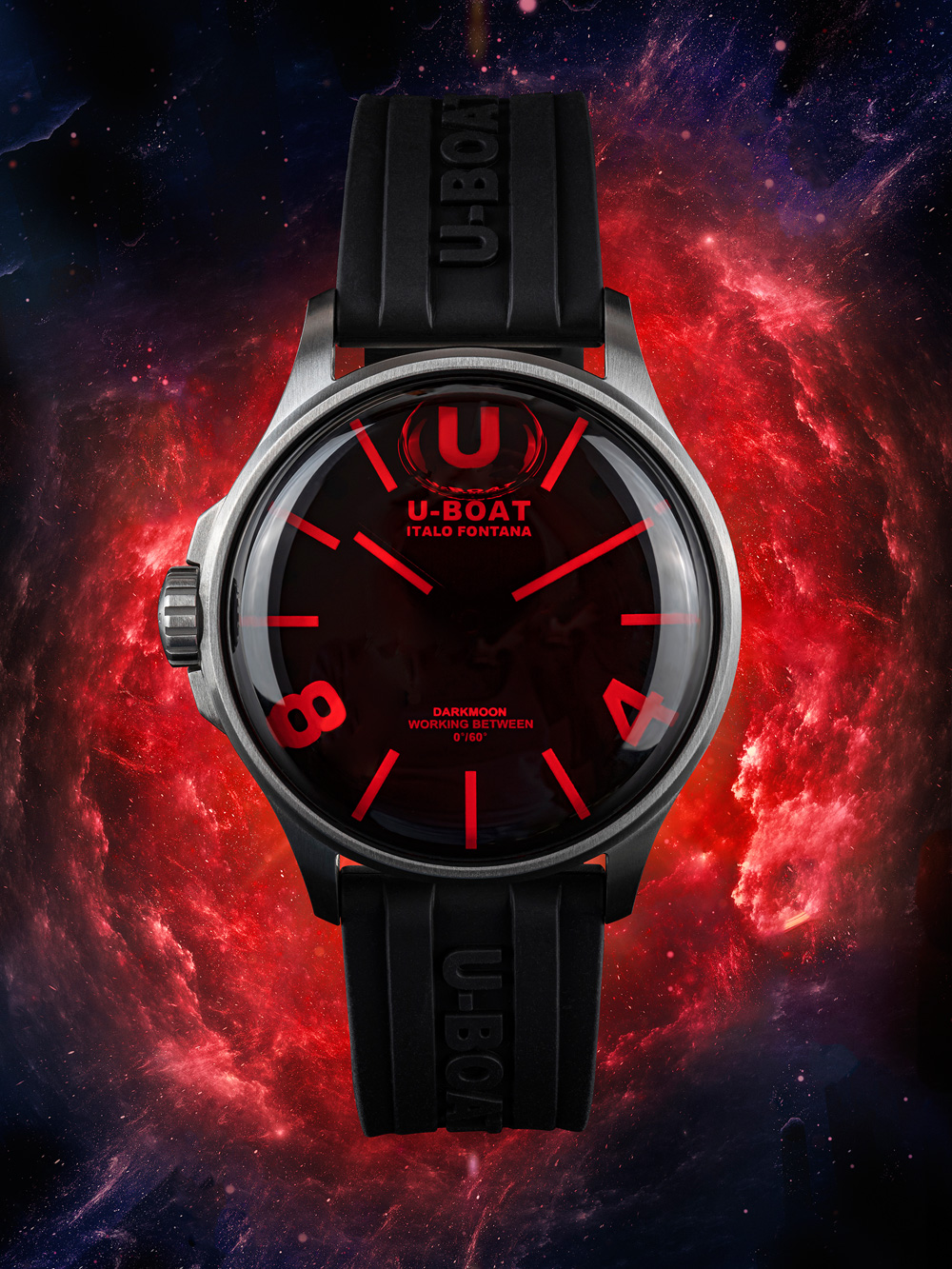 Omschrijving Met dit moderne en sportieve U-Boat 9305 Darkmoon SS rood glazen herenhorloge van 40 mm en 5ATM waterbestendigheid, ben je altijd bij de tijd en klaar voor elke gelegenheid.
