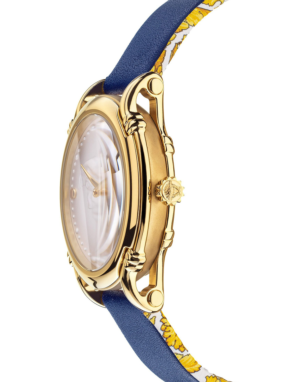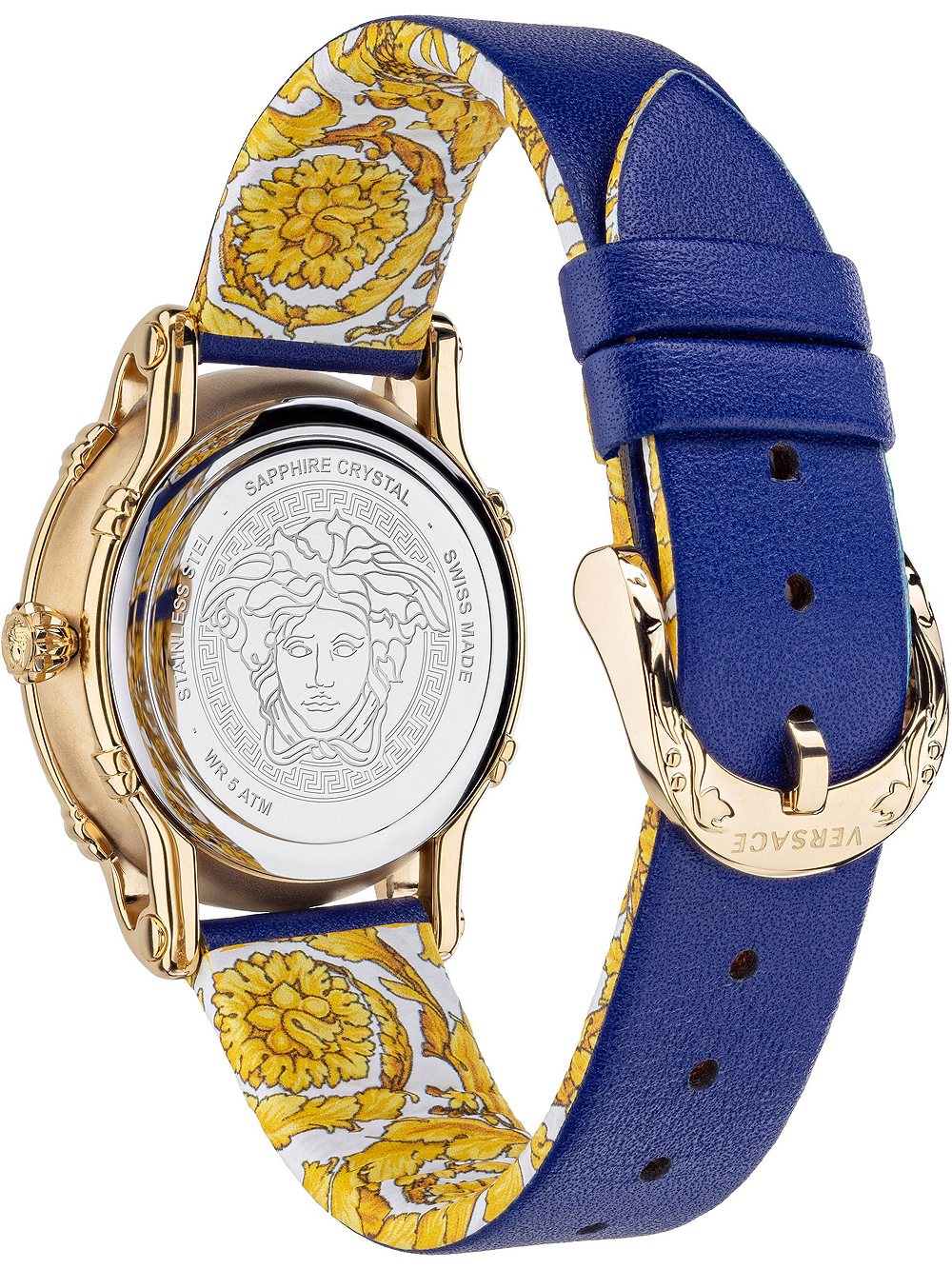 Omschrijving Met dit moderne Versace polshorloge, model VEPN00420, in de Safety Pin serie van 34mm met Swiss Made quartz uurwerk en blauwe leren band, ben je altijd op tijd én trendy!