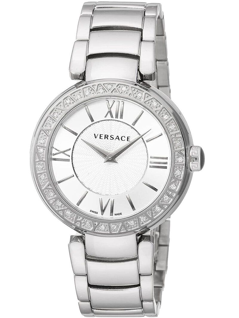 Met dit elegante Versace VNC160015 Leda dameshorloge van 38 mm en waterdichtheid van 5 ATM ben je altijd stijlvol en op tijd, dankzij de Zwitserse kwaliteit en de zilveren afwerking met zirconia details.