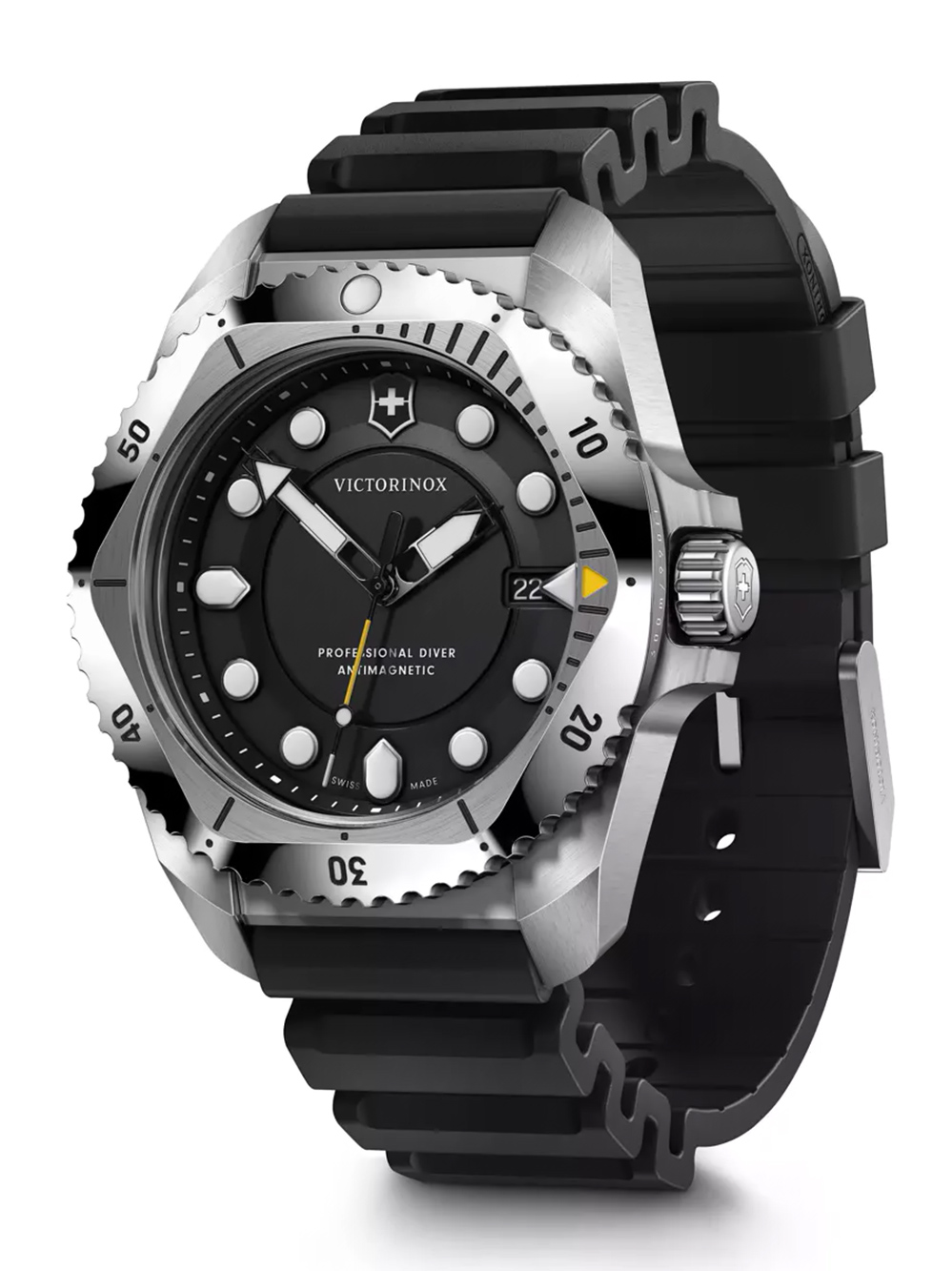 Omschrijving Duik in stijl met dit Victorinox herenhorloge, uitgerust met een batterij en Swiss Made uurwerk, waterbestendig tot 30 meter en met een sportieve uitstraling dankzij de zwarte wijzerplaat en caoutchouc band.